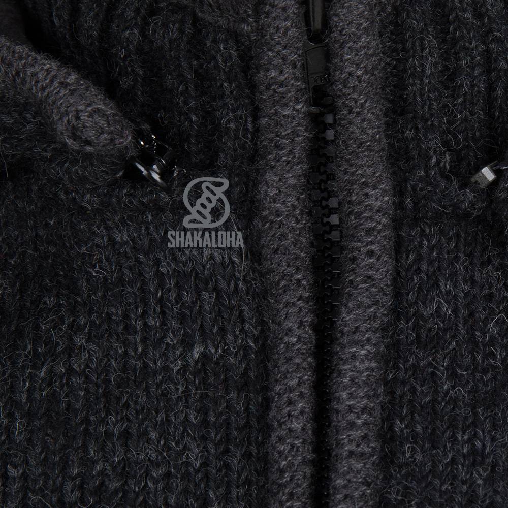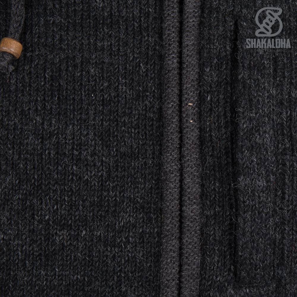 Chaleco de punto de lana Shakaloha Splendor ZH antracita con forro de algodón y capucha desmontable - Hombre/Unisex - Hecho a mano en Nepal con lana de oveja