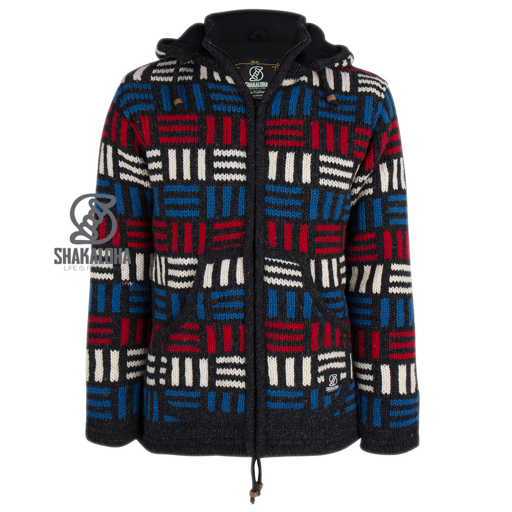 El chaleco cuenta con una capucha desmontable y un amplio bolsillo tipo canguro en la parte delantera, también forrado de algodón, al igual que la capucha desmontable. Incluso con la capucha desmontada, el cuello alto interior mantiene el calor. Todo el chaleco está forrado con un fino, cómodo, suave y elástico forro de algodón, lo que lo hace más ligero y menos abrigado que los chalecos Shakaloha con forro polar. Por lo tanto, este llamativo chaleco es más adecuado para quienes tienden a sobrecalentarse y para el verano. Este chaleco es para hombre/unisex; también está disponible para mujer en gris y multicolor. Los chalecos Shakaloha están hechos 100 % de lana de oveja de Nueva Zelanda y se fabrican en Nepal respetando tanto a los animales como a los trabajadores. Se pueden lavar con un poco de detergente para lana en un ciclo de 30 grados.