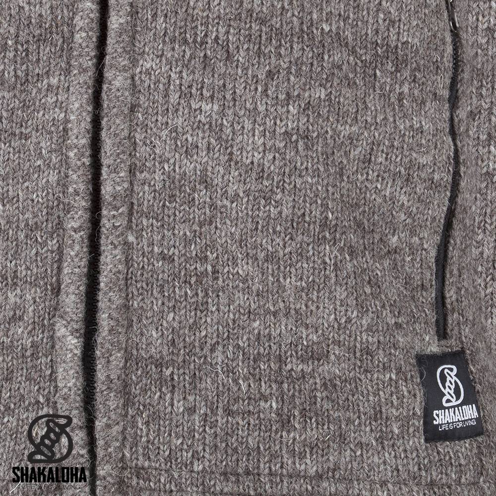 Chaleco de punto de lana Shakaloha Navigator marrón claro topo con forro polar y capucha desmontable - Hombre/Unisex - Hecho a mano en Nepal con lana de oveja