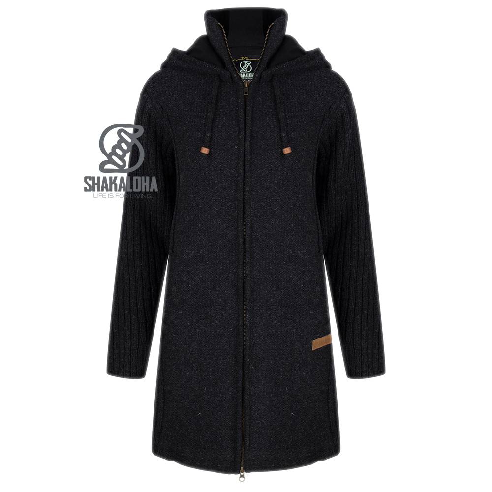 Elegante abrigo/cárdigan largo de lana para mujer, con forro de algodón y nailon en las mangas para ponérselo y quitárselo fácilmente. Tejido con una sola hebra de pura lana de oveja. El cuerpo está tejido del revés y presenta rayas en las mangas. - Capa exterior 100 % lana de oveja - Forro 100 % algodón en el cuerpo y 100 % nailon en las mangas - Cremallera YKK de doble dirección - Bolsillos laterales - Capucha desmontable - Bolsillo interior con cremallera - También disponible en beige, marrón claro y gris, tallas de la S a la 2XL. Los chalecos Shakaloha están confeccionados con 100 % lana de oveja de Nueva Zelanda y se fabrican en Nepal respetando tanto a los animales como a los trabajadores. Se pueden lavar con un poco de detergente para lana en un ciclo de 30 grados.
