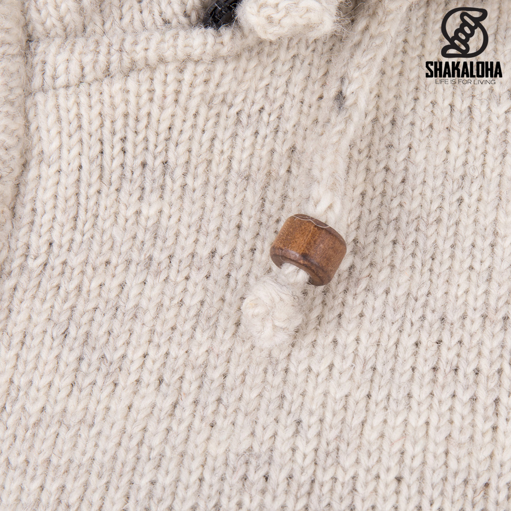 Descripción Shakaloha chaqueta de punto de lana Crawford ZH Crema Beige con Forro de algodón y Capucha Desmontable - Mujer - Hecho a mano en Nepal de Lana de Oveja