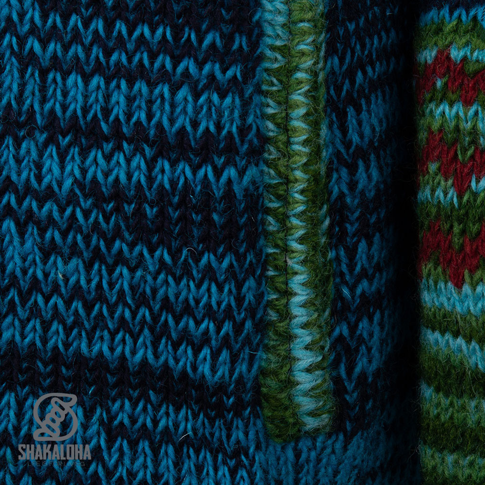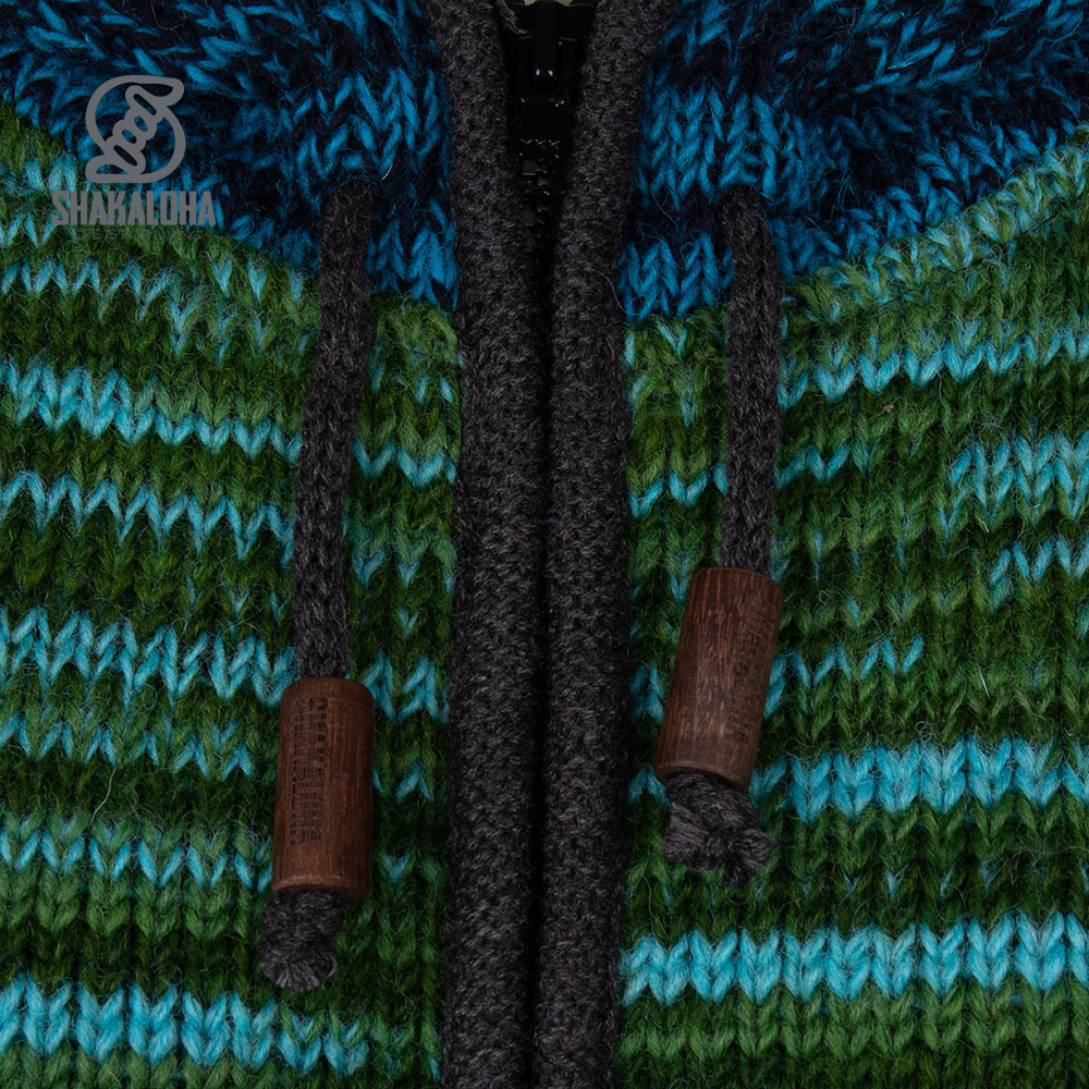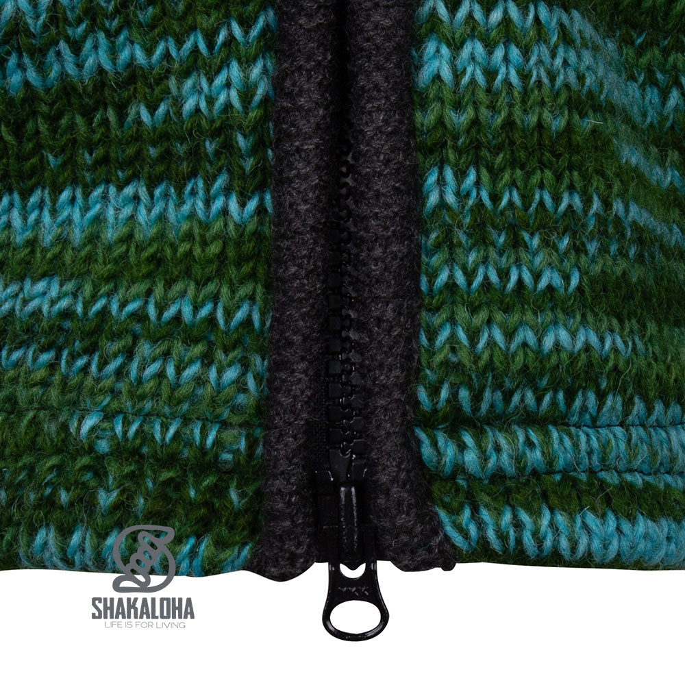 Cárdigan largo de lana para mujer en varios tonos de verde y azul, con ribete antracita. Tiene capucha y está completamente forrado con un cálido forro polar que llega hasta la cadera y las rodillas. Cuenta con cómodos bolsillos laterales y un bolsillo interior con cremallera. Este cárdigan está disponible en una amplia variedad de colores y en tallas de la S a la 3XL. Los cárdigans Shakaloha están confeccionados 100 % con lana de oveja de Nueva Zelanda y se fabrican en Nepal respetando tanto a los animales como a los trabajadores. Se pueden lavar con un poco de detergente para lana en un ciclo de 30 grados.