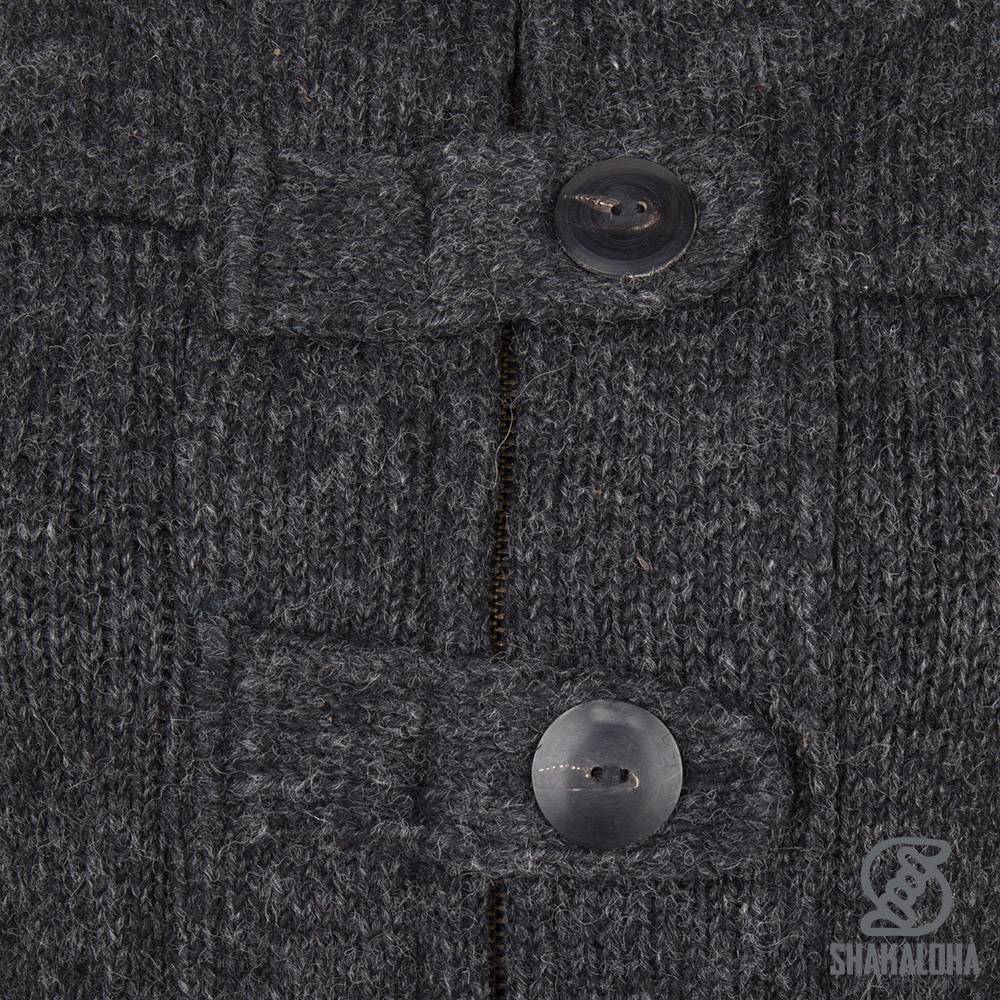 Precioso cárdigan largo para mujer, color gris antracita, completamente forrado de algodón. El cárdigan con capucha llega por encima de la rodilla y presenta botones únicos, bolsillos con solapa, un bolsillo interior y un cinturón. El cárdigan está rematado con botones. Gracias al forro de algodón, es resistente a los arañazos y no suelta pelusa. La cremallera es YKK y extremadamente duradera. Este suéter está disponible en tallas de la S a la 2XL en gris y beige. Los cárdigans Shakaloha están confeccionados con 100 % lana de oveja de Nueva Zelanda y se fabrican en Nepal respetando tanto a los animales como a los trabajadores. Se pueden lavar con un poco de detergente para lana en un ciclo especial para lana a 30 grados.
