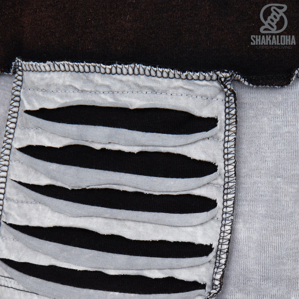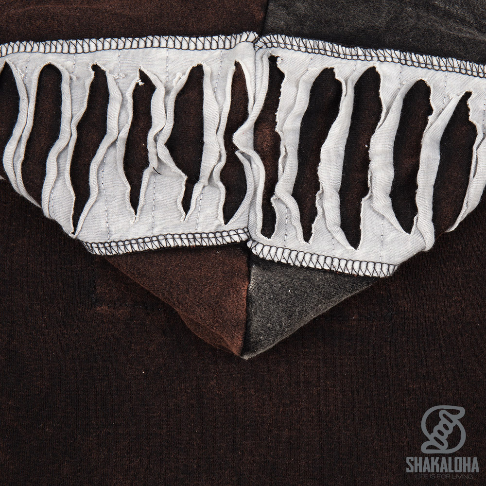 Chaqueta hippie forrada para mujer en gris y marrón con vibrantes diseños florales. Tiene bolsillos laterales y capucha. Estas chaquetas están confeccionadas en Nepal y están disponibles en tallas S-XL.