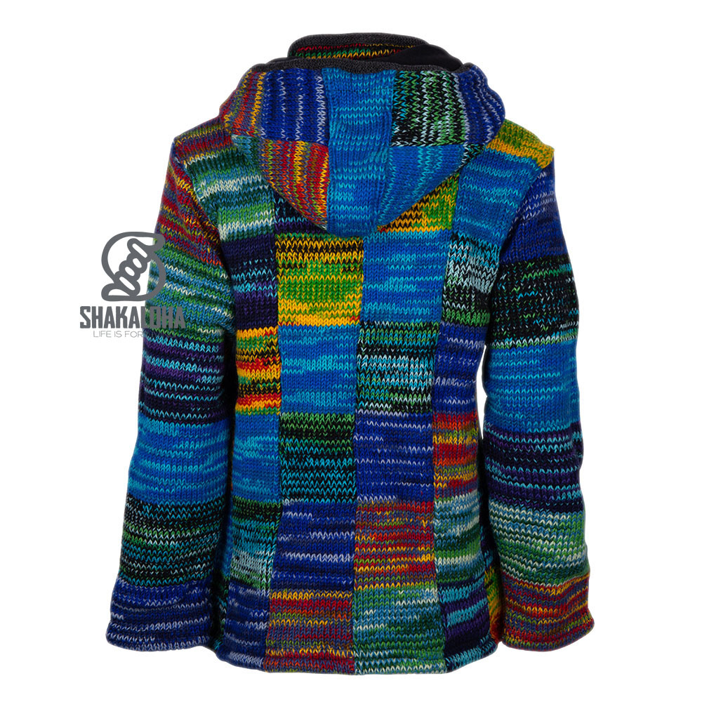 Este cárdigan colorido consta de pequeñas áreas en diferentes colores, como azul, rojo, verde. El conjunto todavía parece tranquilo a pesar de la gran variedad de colores. Este cárdigan único tiene bolsillos laterales, un bolsillo interior que se puede cerrar y una capucha que están forrados con un forro polar suave y cálido para una comodidad de uso óptima.