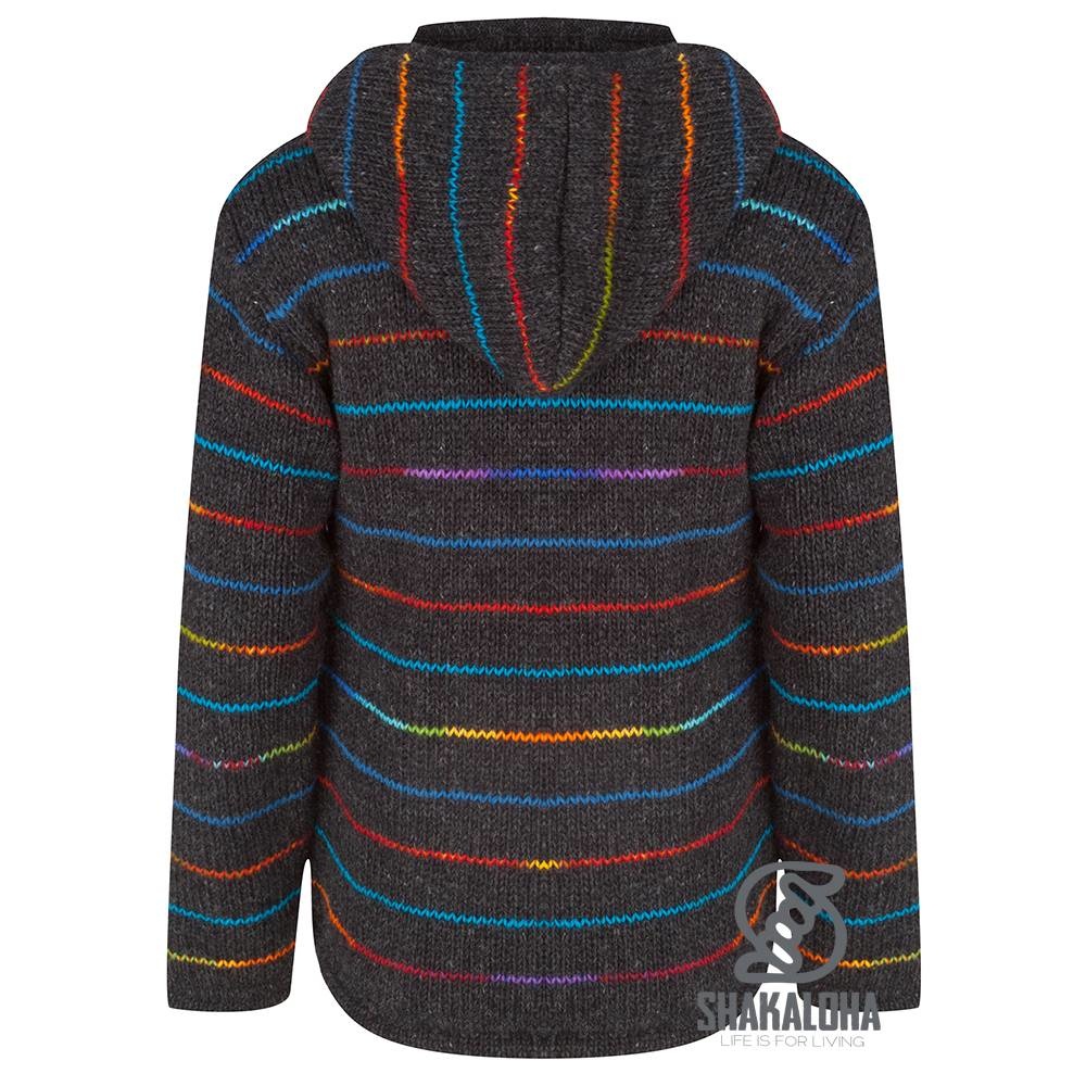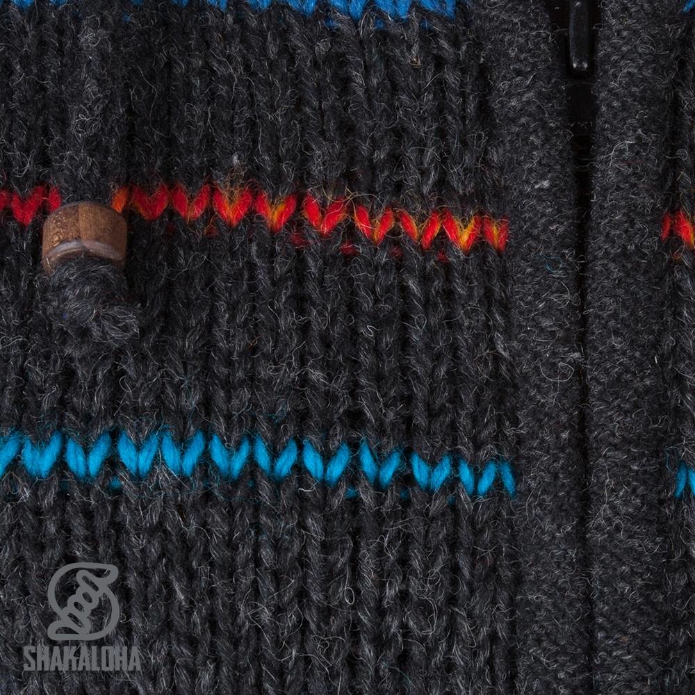 Chaleco de punto de lana Shakaloha Spectre Antracita Multicolor con forro polar y capucha con cuello interior - Mujer - Hecho a mano en Nepal con lana de oveja