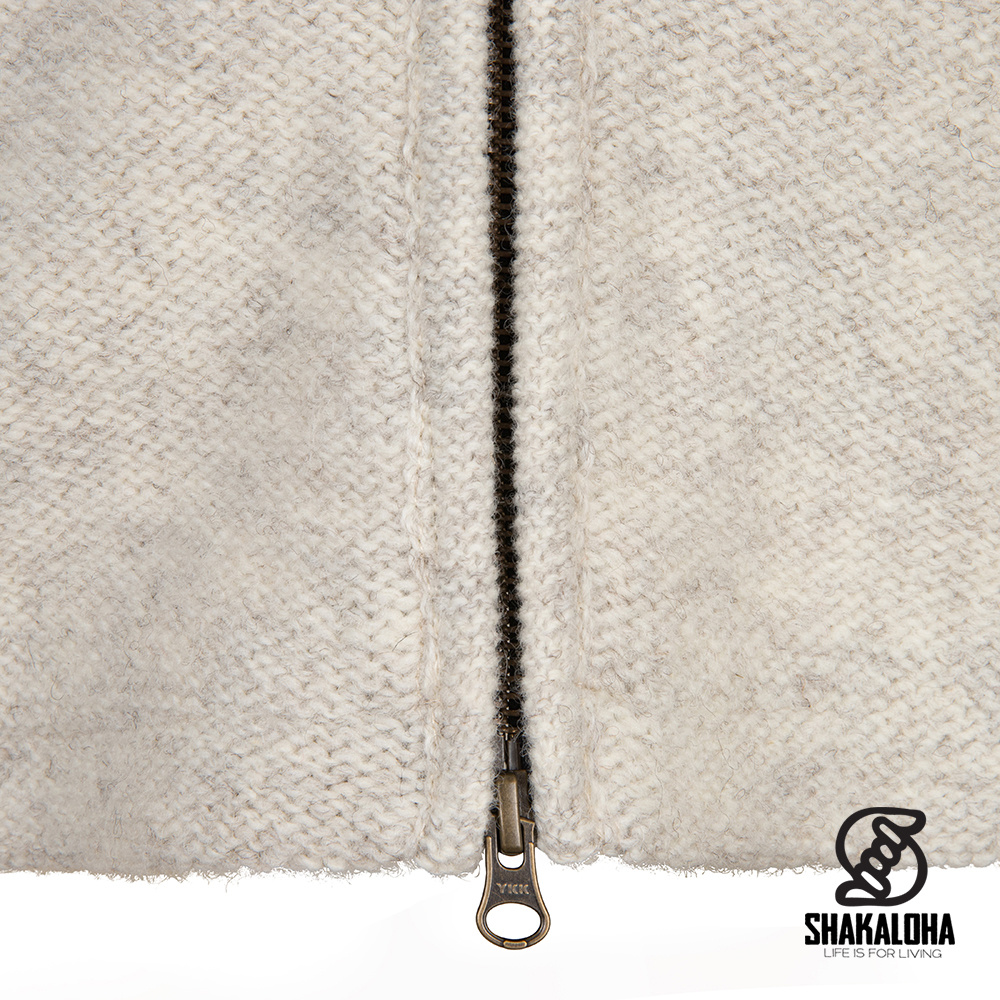 Chaleco de punto de lana Shakaloha Supermodelo ZH beige crema con forro de algodón y capucha desmontable - Mujer - Hecho a mano en Nepal con lana de oveja