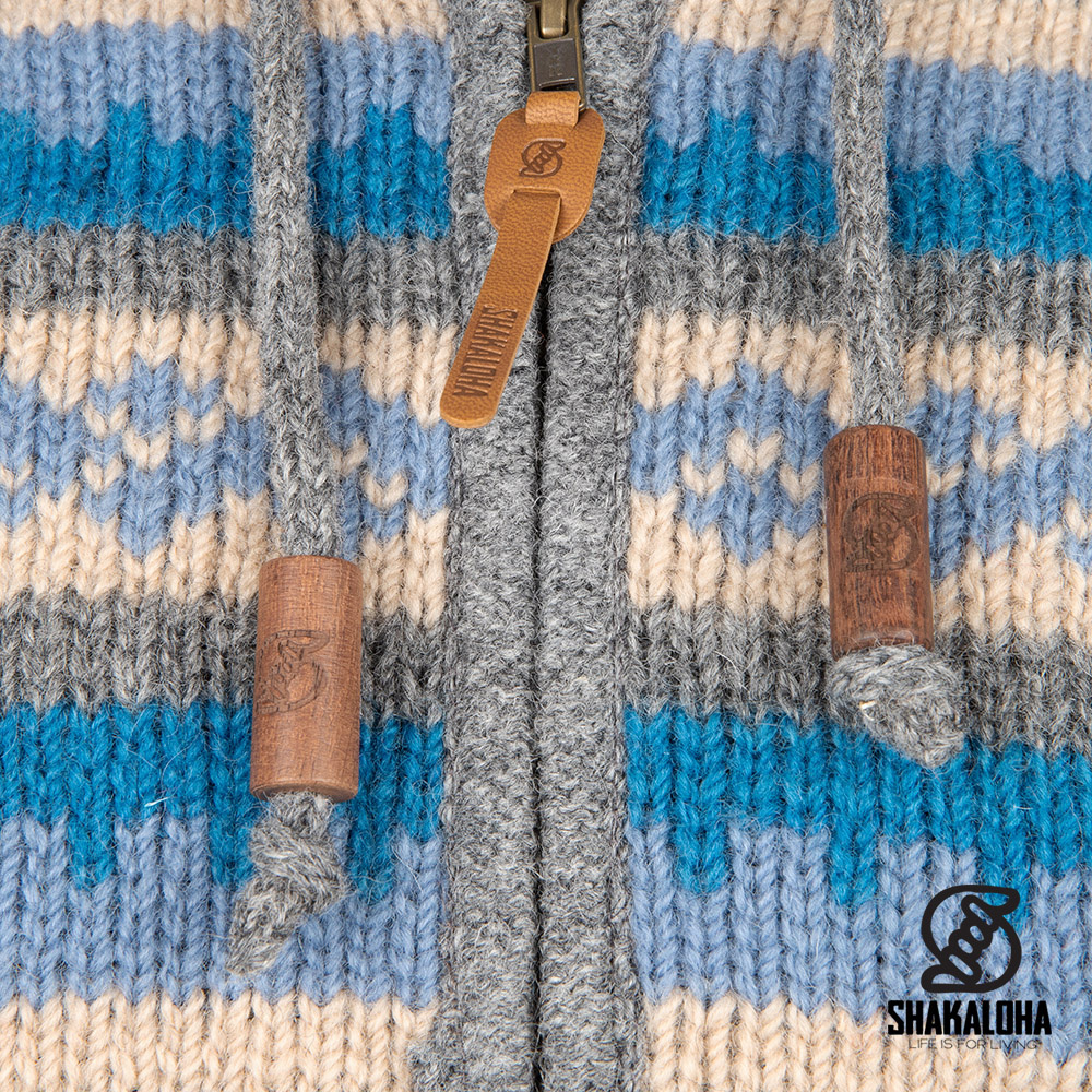 Shakaloha Cardigan en laine tricotée Dugle Gris avec doublure et capuche en polaire Teddy - Homme/Uni - Fait main au Népal à partir de laine de mouton