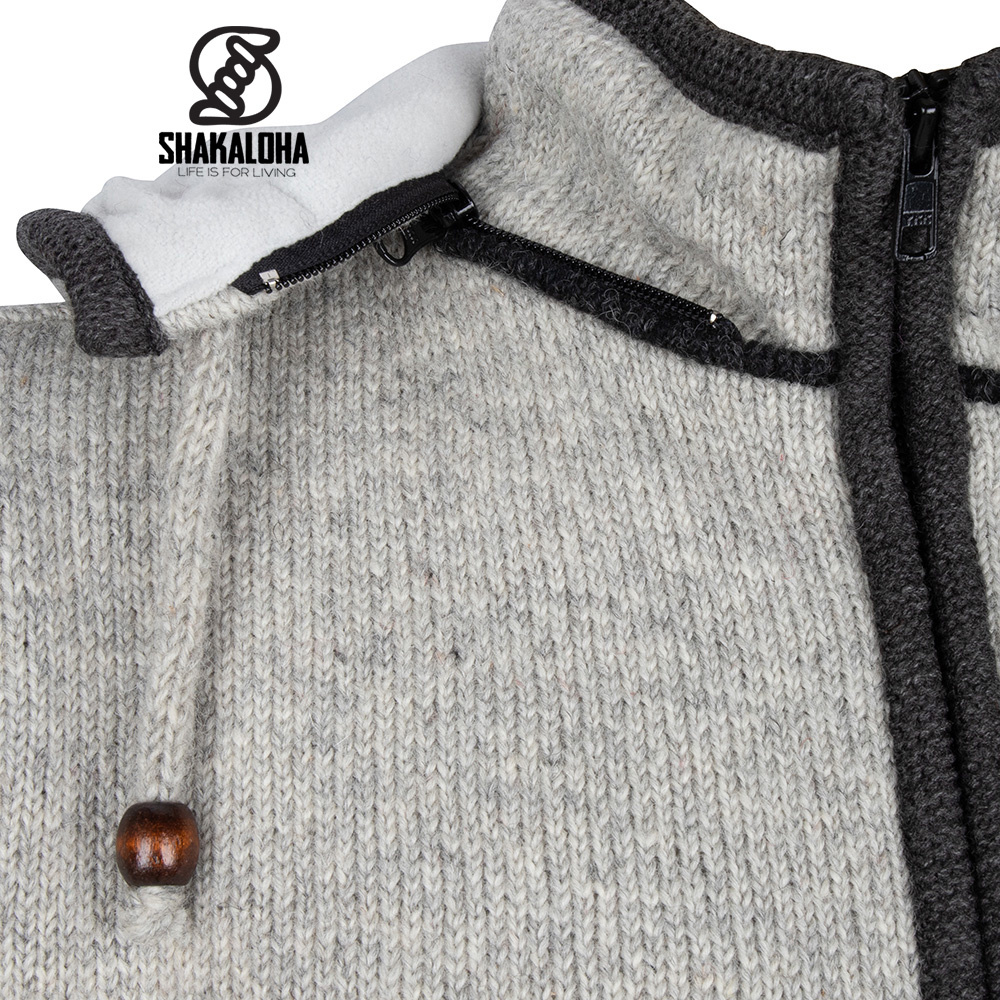 Description Cardigan en laine tricoté Shakaloha Luxor ZH avec doublure polaire et capuche amovible - Homme / Uni - Fait à la main au Népal à partir de laine de mouton