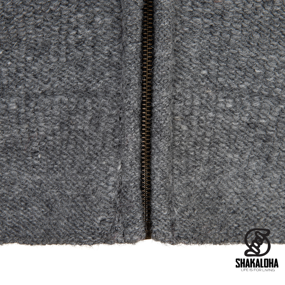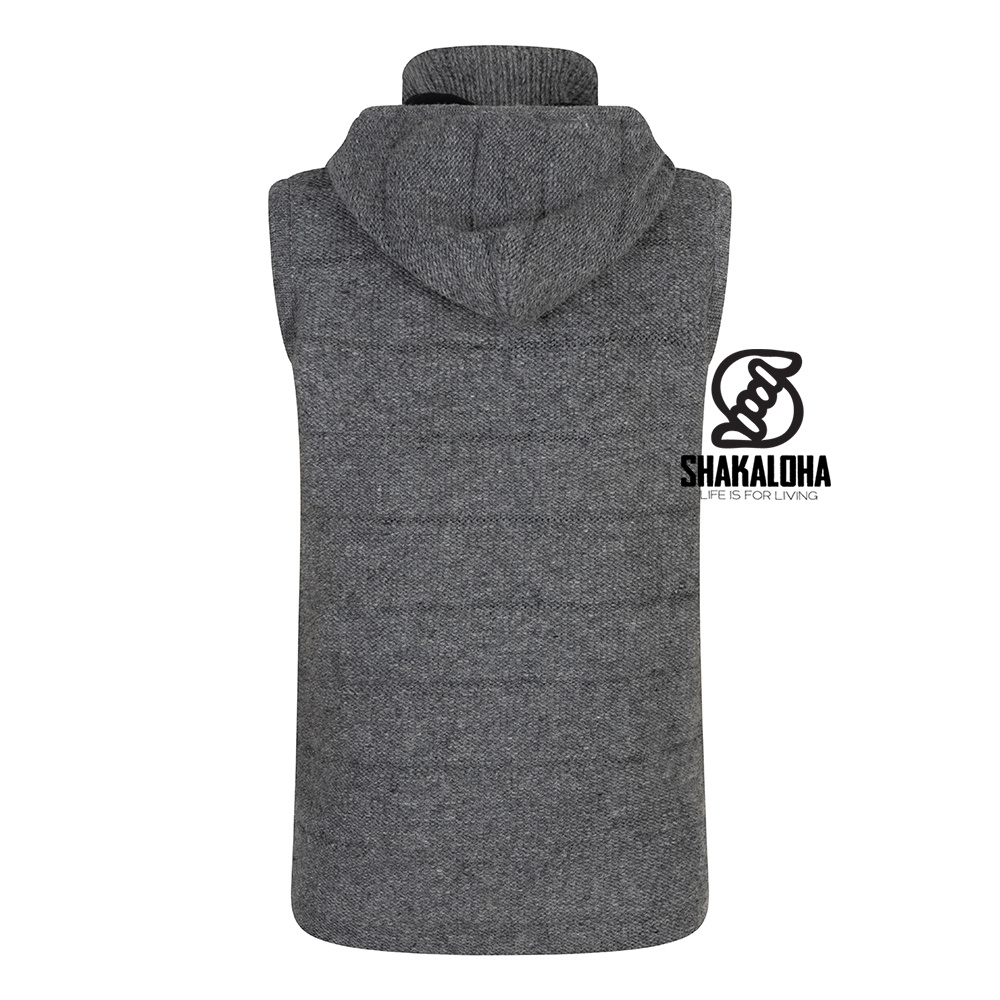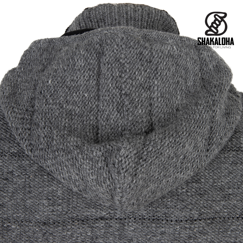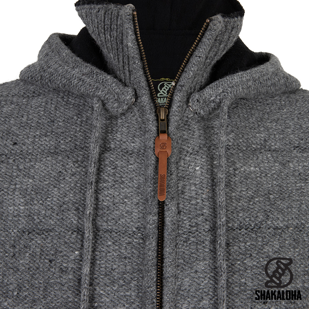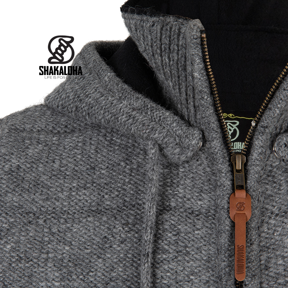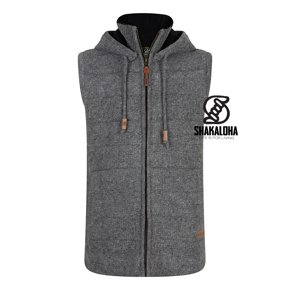 Gilet en laine tricoté à 100% en laine de mouton, doublé de polaire polyester au niveau du corps, de la capuche et des poches