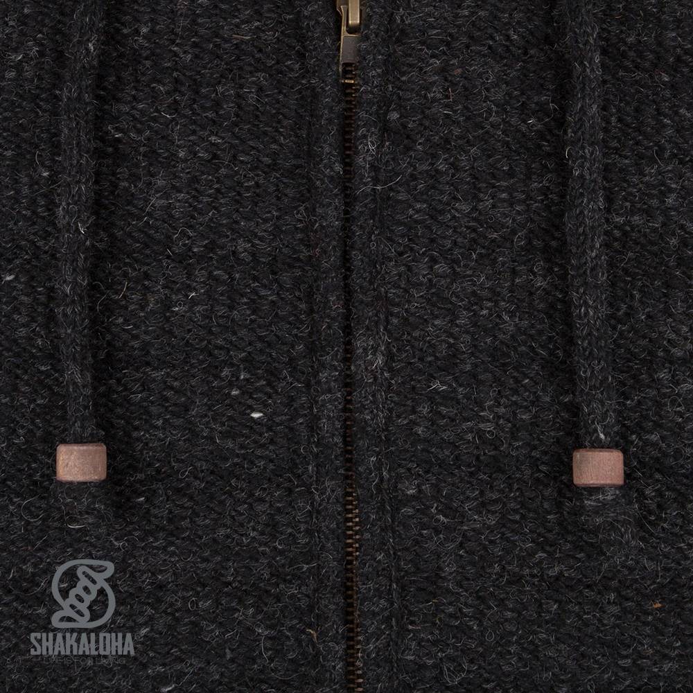 Shakaloha Veste en Laine Tricoté Chuck Ziphood Anthracite avec Doublure en polaire et Capuche détachable - Hommes - Uni - Fabriqué à la main au Népal en laine de mouton