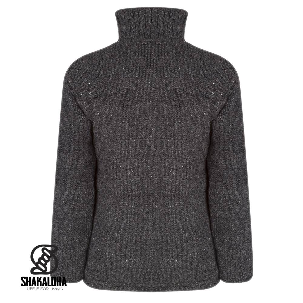 Shakaloha Veste en Laine Tricoté Flash Collar Anthracite avec Doublure en polaire et Col haut - Hommes - Uni - Fabriqué à la main au Népal en laine de mouton