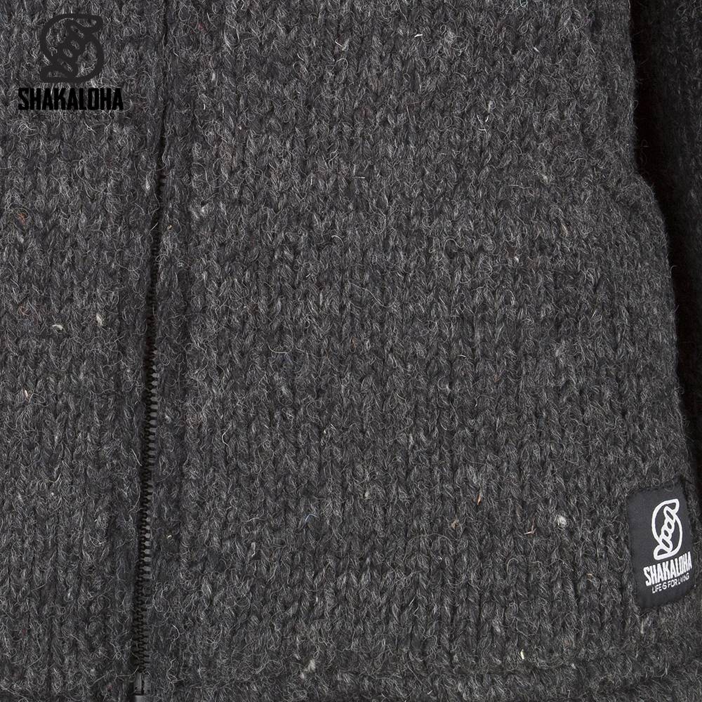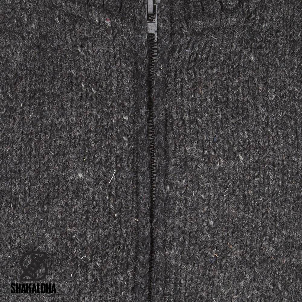 Description Shakaloha Veste en Laine Tricoté Flash Collar Anthracite avec Doublure en polaire et Col haut - Hommes - Uni - Fabriqué à la main au Népal en laine de mouton