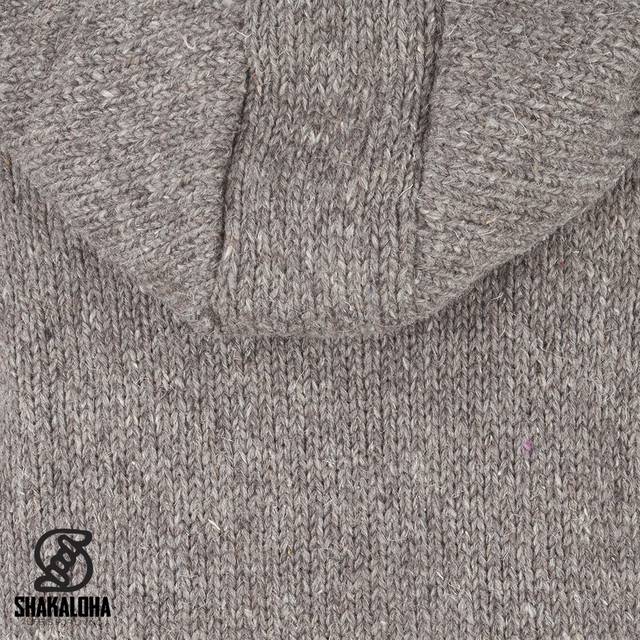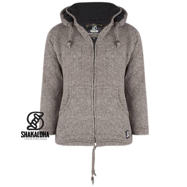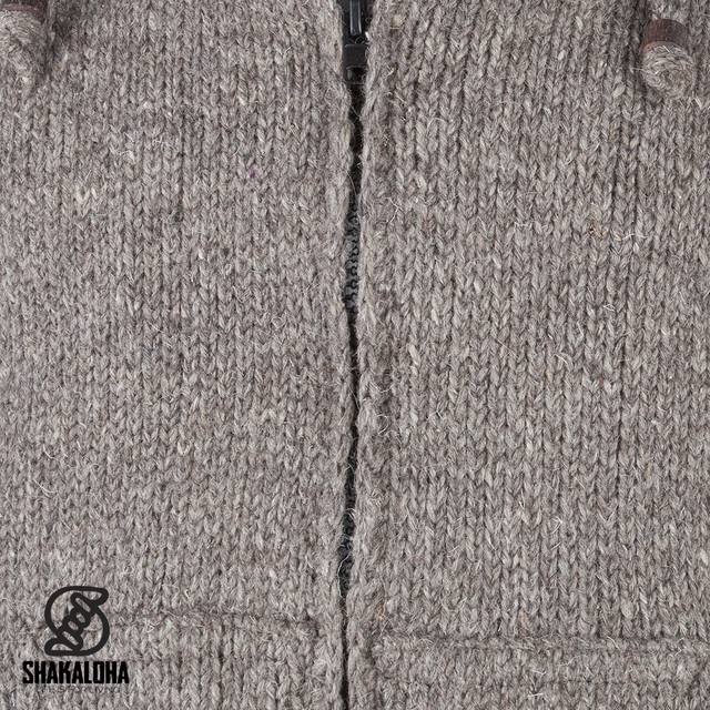 Shakaloha Veste en Laine Tricoté Flash Ziphood Taupe marron clair avec Doublure en polaire et Capuche détachable - Hommes - Uni - Fabriqué à la main au Népal en laine de mouton