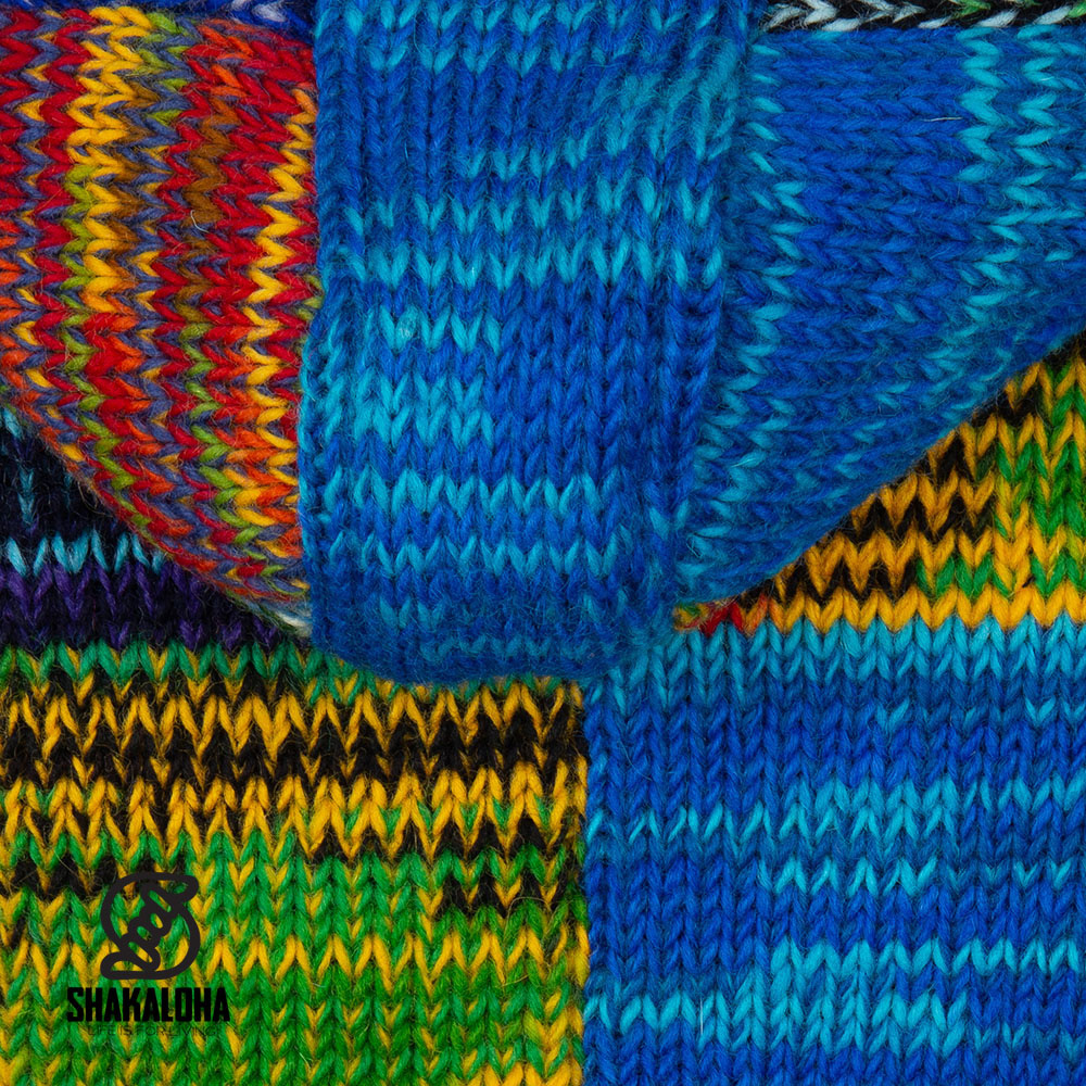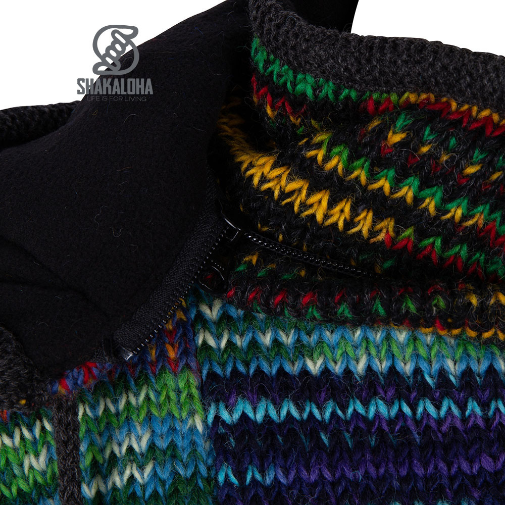 Ce cardigan coloré se compose de petites zones de différentes couleurs, telles que le bleu, le rouge, le vert. L'ensemble reste calme malgré la grande variété de couleurs. Ce cardigan unique a des poches latérales, une poche intérieure fermable et une capuche qui sont toutes doublées de molleton doux et chaud pour un confort de port optimal. Ce cardigan patchwork est disponible dans de nombreuses combinaisons de couleurs différentes dans les tailles S à 3XL. Les gilets Shakaloha sont composés à 100% de laine de mouton de Nouvelle-Zélande et sont fabriqués au Népal dans le respect des animaux et des employés. Les cardigans peuvent être lavés avec un peu de détergent pour laine sur un programme de lavage de laine à 30 degrés.