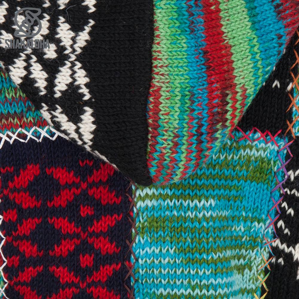 Cette veste patchwork pour femmes Shakaloha a différentes surfaces avec un motif de déchirure dans différentes nuances de bleu et des surfaces avec des motifs norvégiens dans les combinaisons de couleurs noir / blanc et noir / rouge. Le cardigan a une doublure en polaire douce à l'intérieur, à la fois dans le corps, les bras, le col et la capuche et même dans les poches, ce qui augmente considérablement le confort de port. Si vous mettez ce gilet, vous ne le retirerez jamais. Le gilet peut être porté en hiver et en été et possède une fermeture à glissière YKK solide et une poche intérieure verrouillable.