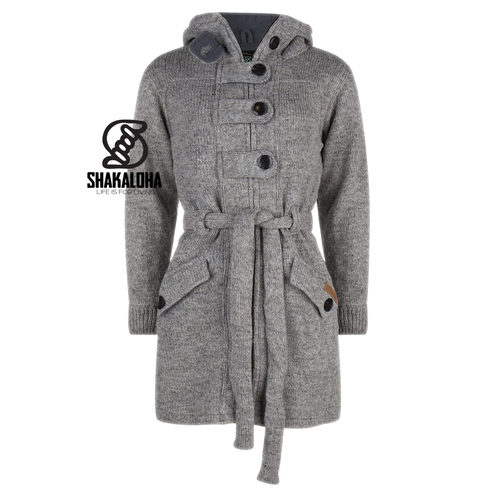 Magnifique cardigan long en laine gris pour femme avec poches latérales à rabat, une ceinture en laine et fermeture avec boutons qui rendent le cardigan unique. Le gilet a une fermeture à glissière bidirectionnelle de YKK et peut également être ouvert en bas par exemple pendant le cyclisme, une capuche et est doublé de polaire confortable. Vous pouvez porter ce gilet comme gilet et veste tout au long de l'année. Vous pouvez laver les cardigans sur un programme de lavage de laine à 30 degrés avec un peu de détergent en laine, puis les laisser sécher en position couchée. Les cardigans SHAKALOHA sont faits de 100% laine de Nouvelle-Zélande et sont doublés de polaire chaude et confortable. Ils sont fabriqués au Népal, où un environnement de travail agréable a été créé pour les employés. Le nom SHAKALOHA provient des mots hawaïens SHAKA (le signal de la main 'hangloose' qui exprime le respect les uns des autres et de la nature) et ALOHA ("Aimer, c'est partager le bonheur du souffle de vie.") Bienvenue dans le style de vie SHAKALOHA!