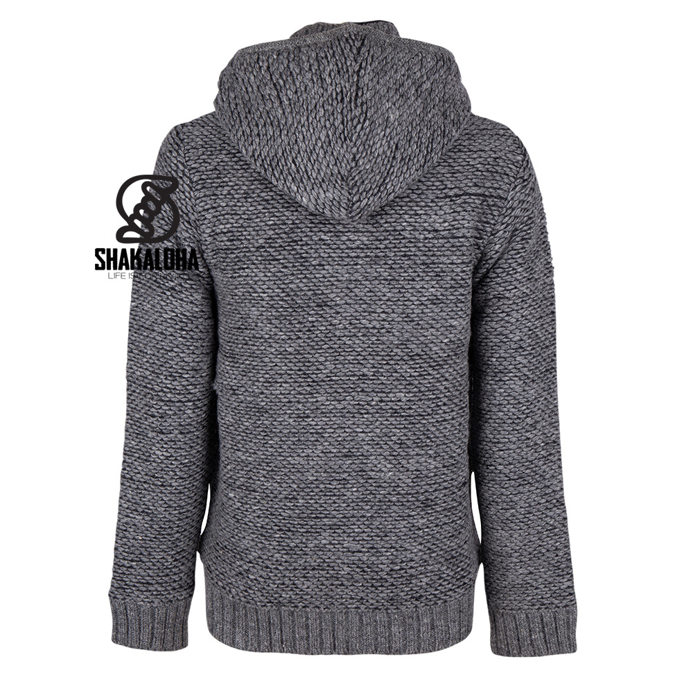Il gilet da uomo in maglia grigia di Shakaloha presenta una speciale lavorazione a maglia e uno sfondo grigio scuro per un effetto sorprendente. Prodotto in Nepal, il gilet presenta tasche laterali e una tasca interna con cerniera, un cappuccio staccabile e cerniere YKK estremamente resistenti. Questo elegante gilet da uomo è interamente foderato in pile, compresi il cappuccio e le tasche laterali.