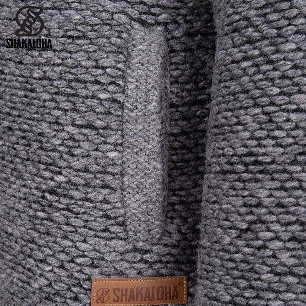 I gilet Shakaloha sono realizzati in lana di pecora neozelandese al 100% e sono prodotti in Nepal nel rispetto degli animali e dei lavoratori. I gilet possono essere lavati con un po' di detersivo per lana, con un ciclo per lana a 30 gradi.