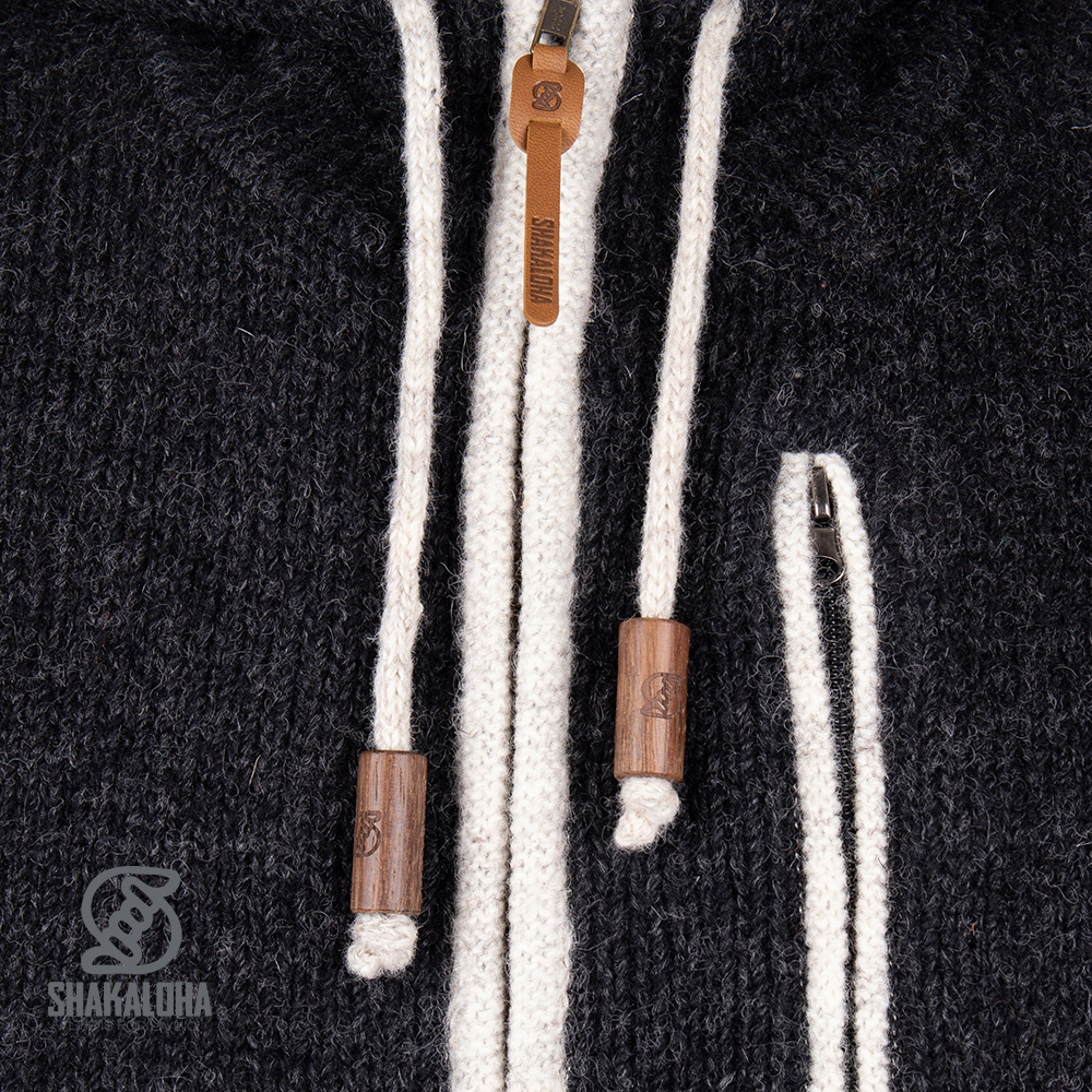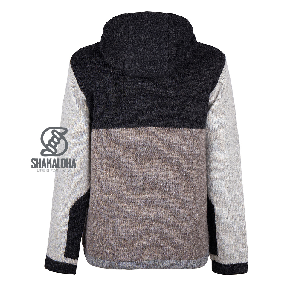 Gilet da uomo Shakaloha in lana con maniche grigie e corpo marrone e nero. Il gilet ha un cappuccio staccabile con cerniera ed è completamente foderato in morbido pile. Questo splendido gilet presenta tasche laterali, una tasca sul petto con cerniera e una tasca interna con cerniera. Una giacca senza tempo in colori naturali, perfetta per tutte le stagioni.