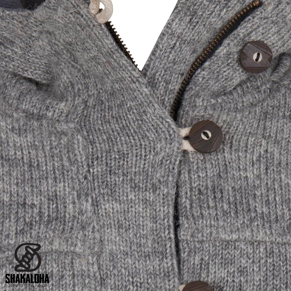 Il primo cardigan Shakaloha in versione maglione! Questo grazioso maglione grigio presenta una cerniera e splendidi bottoni. La cerniera si estende fino allo sterno. Come ci si aspetta da Shakaloha, questo modello presenta anche una calda e morbida fodera in pile, inclusi cappuccio, colletto e maniche. Perfetto come maglione in inverno e come giacca in estate. Questo cardigan è disponibile in grigio e nelle taglie dalla S alla 3XL.
