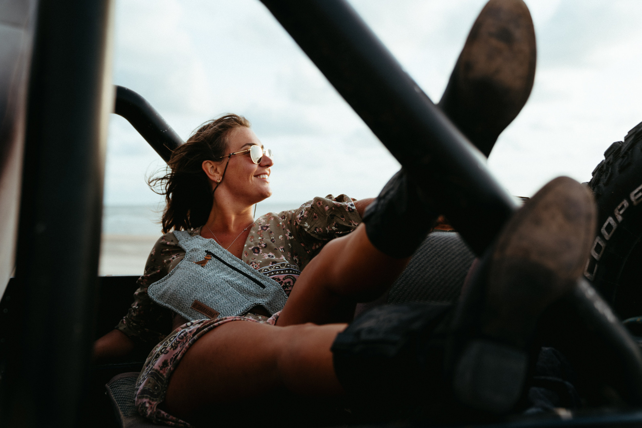 Esclusivo marsupio Shakaloha con cerniere anteriori e posteriori con motivo a zigzag nero/beige. Realizzato in cotone e canapa. Ideale per festival, viaggi ed escursioni.