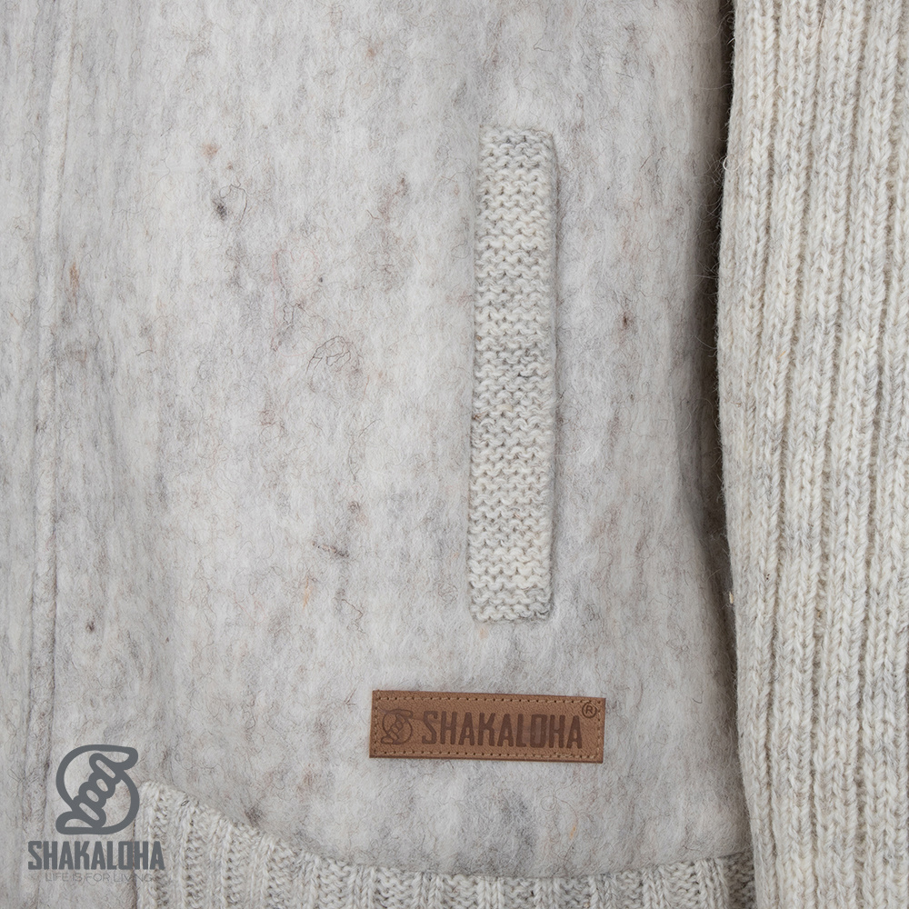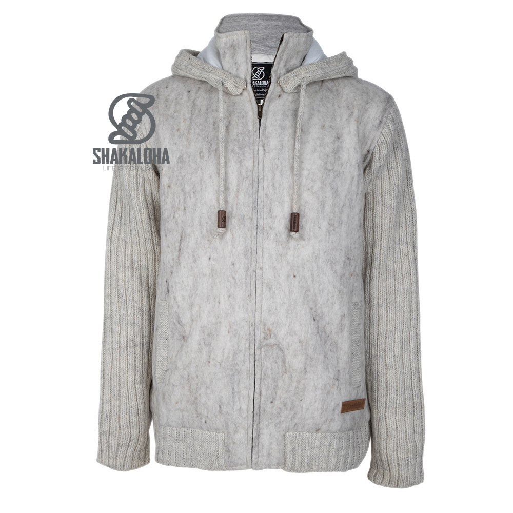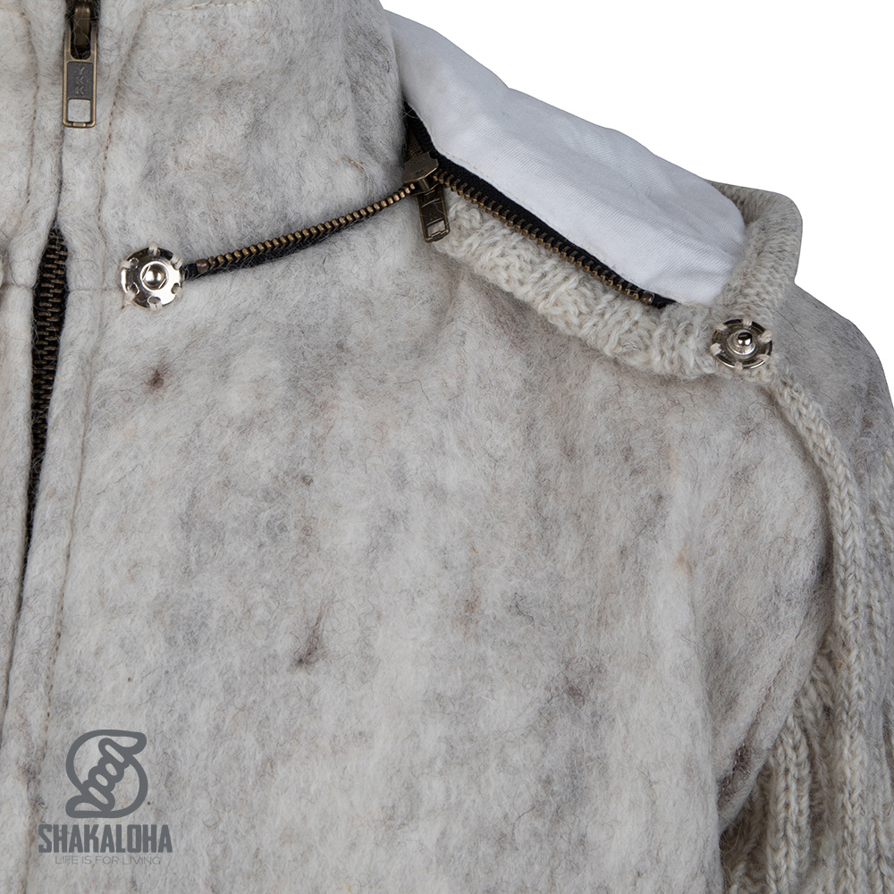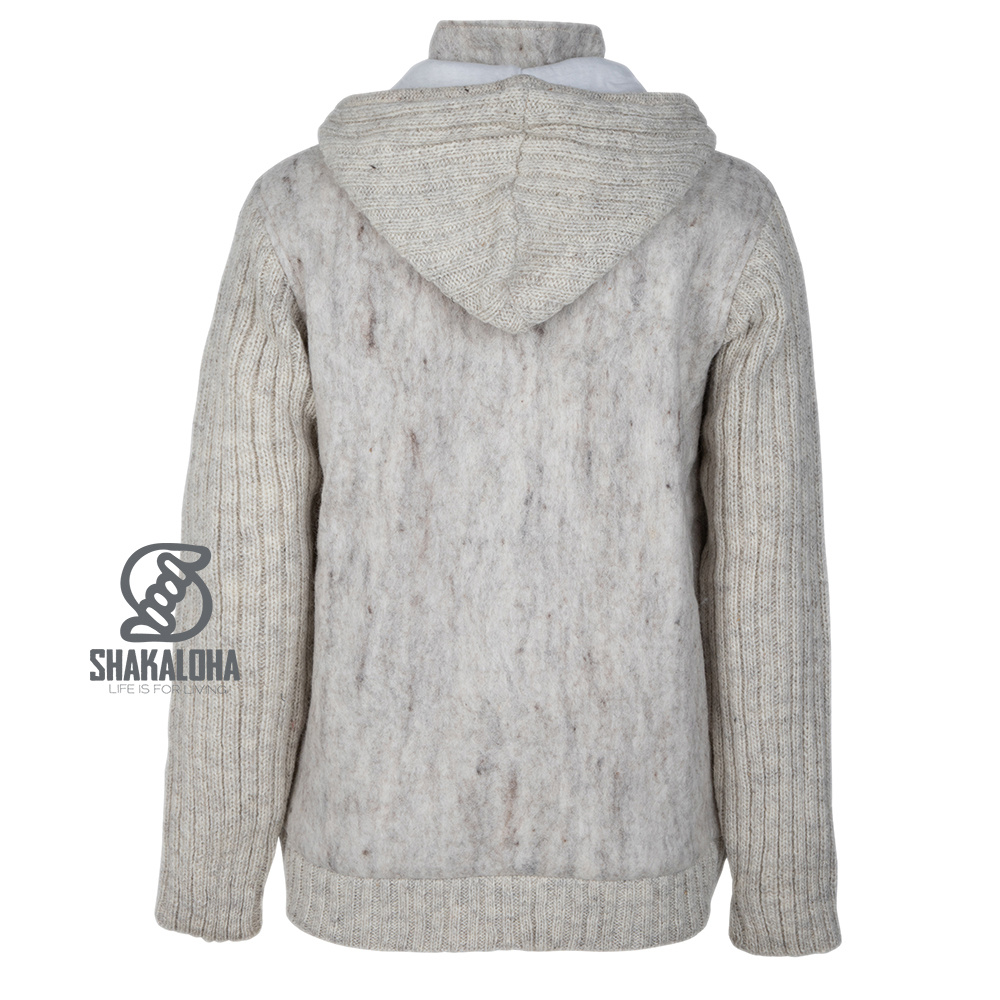 Gilet da baseball in lana lavorata a maglia Shakaloha ZH con fodera in cotone e cappuccio staccabile - Uomo/Uniforme - Fatto a mano in Nepal con lana di pecora