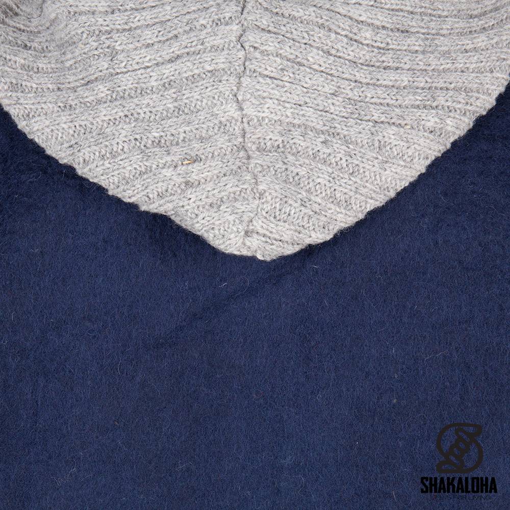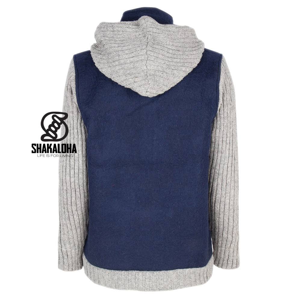 Gilet da baseball in lana lavorata a maglia Shakaloha ZH blu navy con fodera in cotone e cappuccio staccabile - Uomo/Uniforme - Fatto a mano in Nepal con lana di pecora