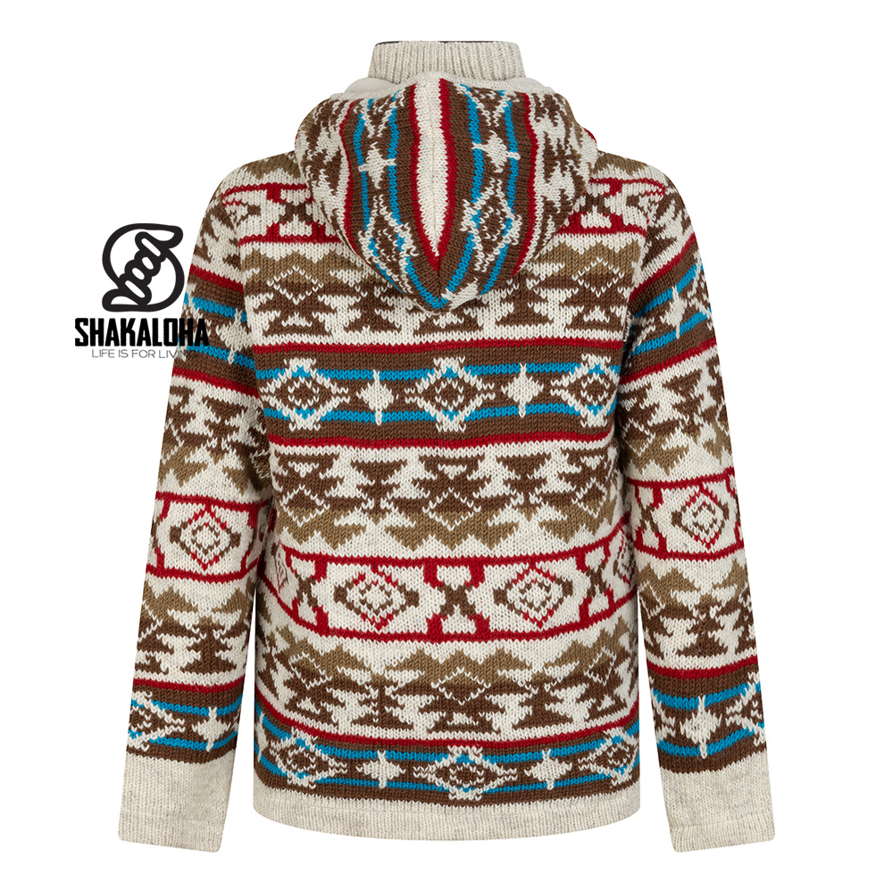 Questo comodo ed elegante cardigan in lana firmato Shakaloha ti terrà al caldo nelle giornate fredde. Fatto a mano in Nepal con lana di alta qualità e decorato con un motivo tradizionale colorato. Ideale per l'uso quotidiano, le passeggiate nella natura o gli sport invernali. Seguire le istruzioni di lavaggio per mantenere il gilet in condizioni ottimali.