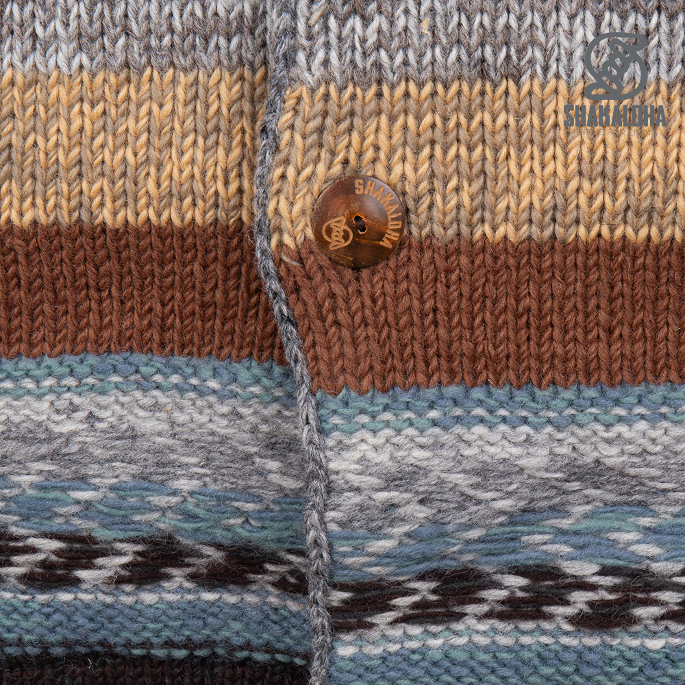 I gilet Shakaloha sono realizzati in lana di pecora neozelandese al 100% e sono prodotti in Nepal nel rispetto sia degli animali che dei lavoratori. I gilet possono essere lavati con un po' di detersivo per lana, con un ciclo per lana a 30 gradi.