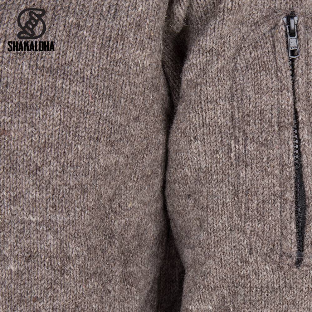 Questo cardigan marrone chiaro è realizzato in 100% lana di pecora ed è completamente foderato in cotone. Presenta un cappuccio staccabile, tasche laterali e tasche con cerniera sul petto e sulla manica sinistra. Le cerniere sono prodotte da YKK e sono incredibilmente resistenti. Grazie alla fodera interna in morbido pile, il cardigan non provocherà mai prurito o pelucchi sulla biancheria intima. Questo maglione è disponibile in un'ampia varietà di colori e taglie dalla S alla 3XL.