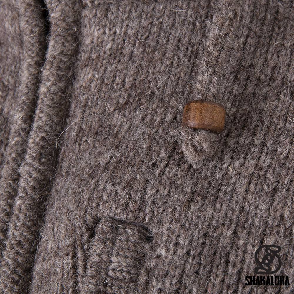 Gilet in lana lavorato a maglia Shakaloha Splendor ZH marrone chiaro talpa con fodera in cotone e cappuccio staccabile - Uomo/Uniforme - Fatto a mano in Nepal con lana di pecora