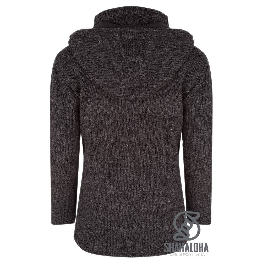 Gilet in lana lavorata a maglia Shakaloha Baltonic Antracite con fodera in pile e cappuccio staccabile - Donna - Fatto a mano in Nepal con lana di pecora
