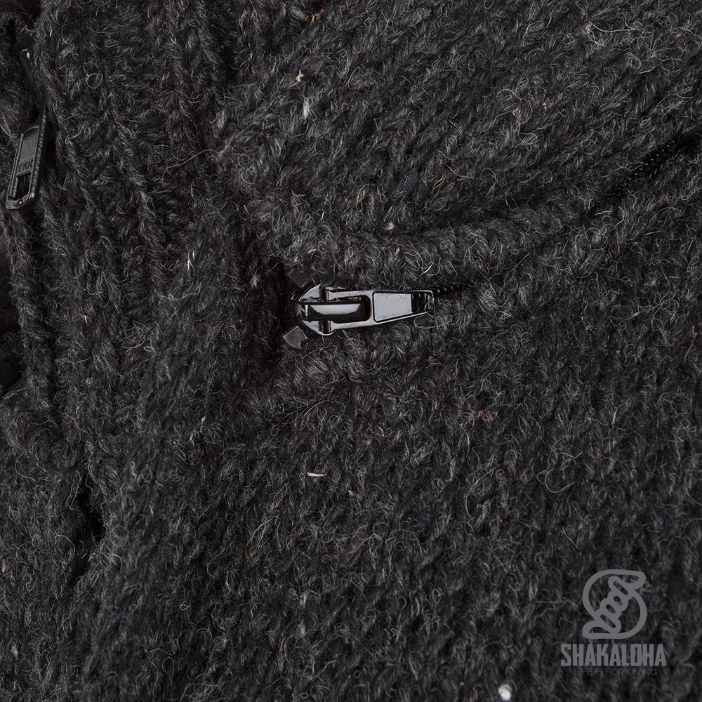 Gilet in lana lavorata a maglia Shakaloha con cappuccio e cerniera antracite con fodera in pile e cappuccio staccabile - Uomo/Uniforme - Fatto a mano in Nepal con lana di pecora