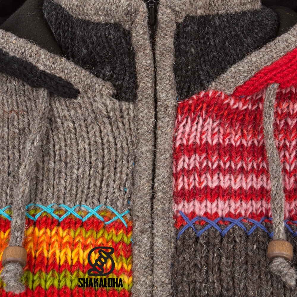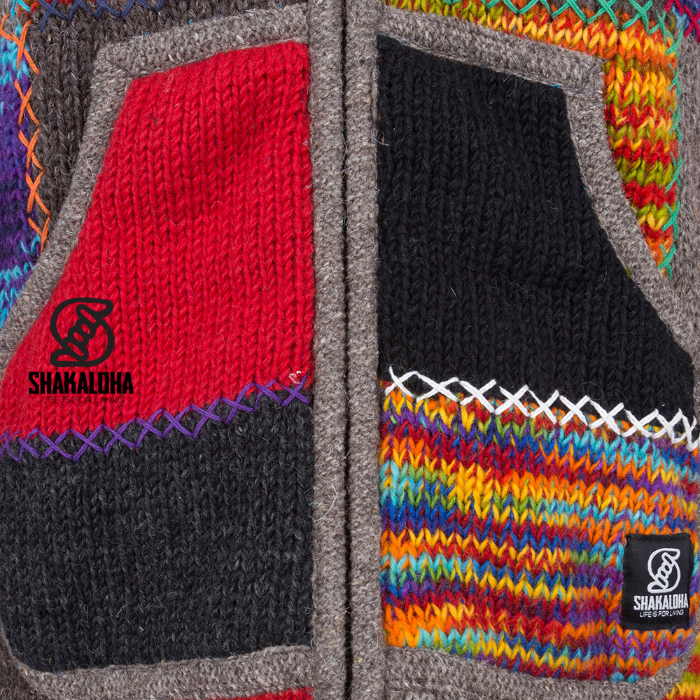 Le giacche Shakaloha sono realizzate in lana di pecora neozelandese al 100% e sono prodotte in Nepal nel rispetto degli animali e dei lavoratori. I gilet possono essere lavati con un ciclo per lana a 30 gradi con un po' di detersivo per lana.