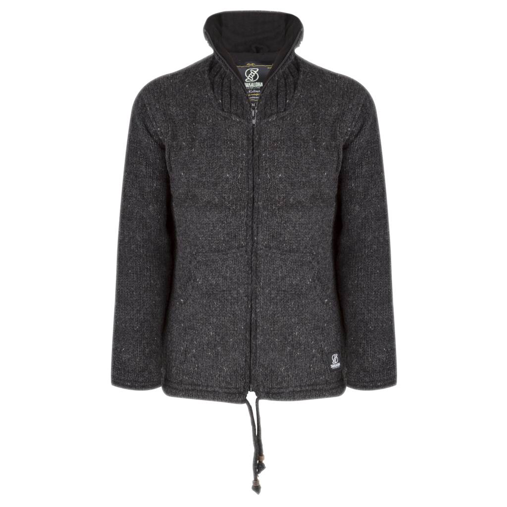 Gilet in lana lavorata a maglia Shakaloha con colletto alto color antracite, fodera in pile e collo alto - Uomo/Uniforme - Fatto a mano in Nepal con lana di pecora