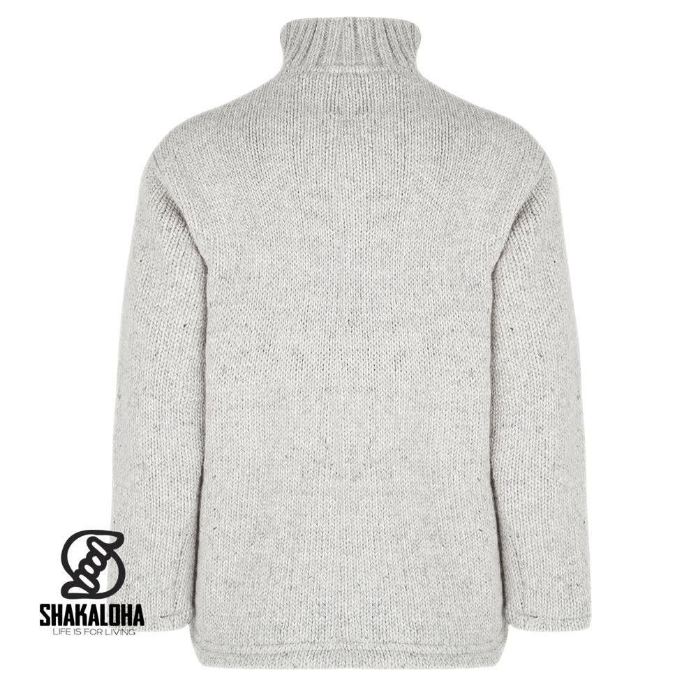 Questo intramontabile cardigan grigio chiaro presenta un collo alto in maglia speciale a righe verticali ed è completamente foderato in morbido pile, inclusi collo, maniche e tasche, per tenerti al caldo e prevenire il prurito. La cerniera YYK è incredibilmente resistente. Questo caldo cardigan può essere indossato come giacca in inverno, ma è anche molto comodo nelle fresche giornate estive. Disponibile in molti colori naturali e nelle taglie dalla S alla 3XL. Questo modello è disponibile anche con cappuccio. I cardigan Shakaloha sono realizzati in lana di pecora neozelandese al 100% e sono prodotti in Nepal nel rispetto sia degli animali che dei lavoratori. I cardigan possono essere lavati con un po' di detersivo per lana, con un ciclo per lana a 30 gradi.