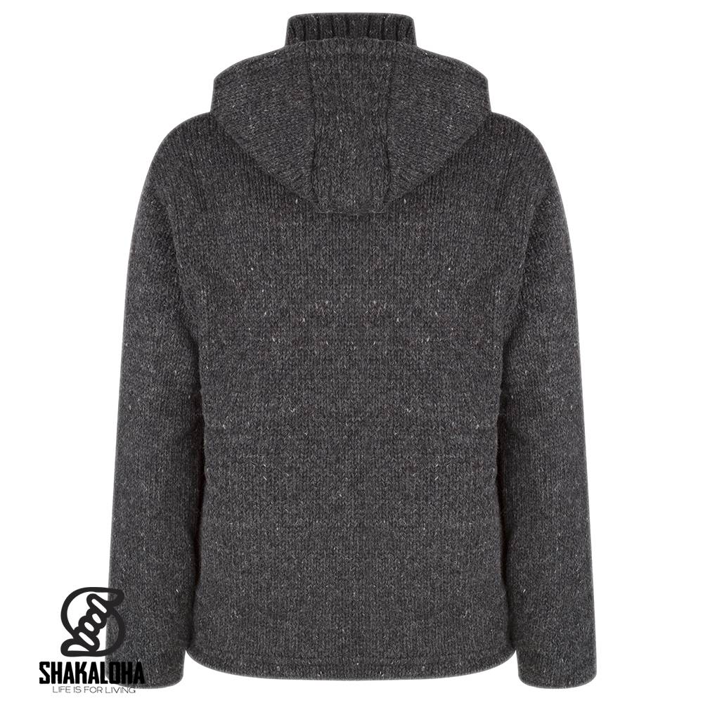 Gilet in lana lavorato a maglia Shakaloha Flash Ziphood Antracite con fodera in pile e cappuccio staccabile - Uomo/Uniforme - Fatto a mano in Nepal con lana di pecora