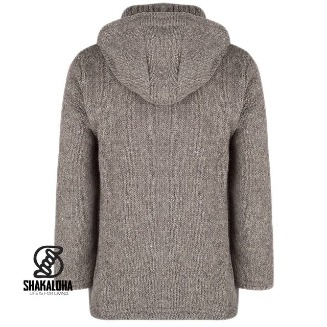 Gilet in lana lavorato a maglia Shakaloha Flash Ziphood marrone chiaro talpa con fodera in pile e cappuccio staccabile - Uomo/Uniforme - Fatto a mano in Nepal con lana di pecora