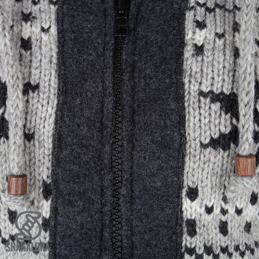 Gilet in lana lavorato a maglia Shakaloha Jigsaw ZH Gris con fodera in pile e cappuccio staccabile - Donna - Fatto a mano in Nepal con lana di pecora