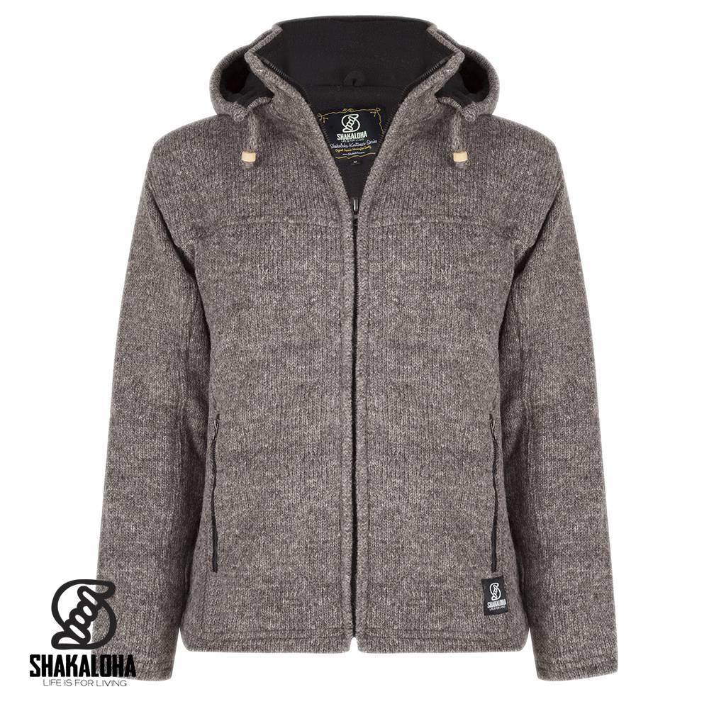 Gilet in lana lavorato a maglia Shakaloha Navigator marrone chiaro talpa con fodera in pile e cappuccio staccabile - Uomo/Uniforme - Fatto a mano in Nepal con lana di pecora
