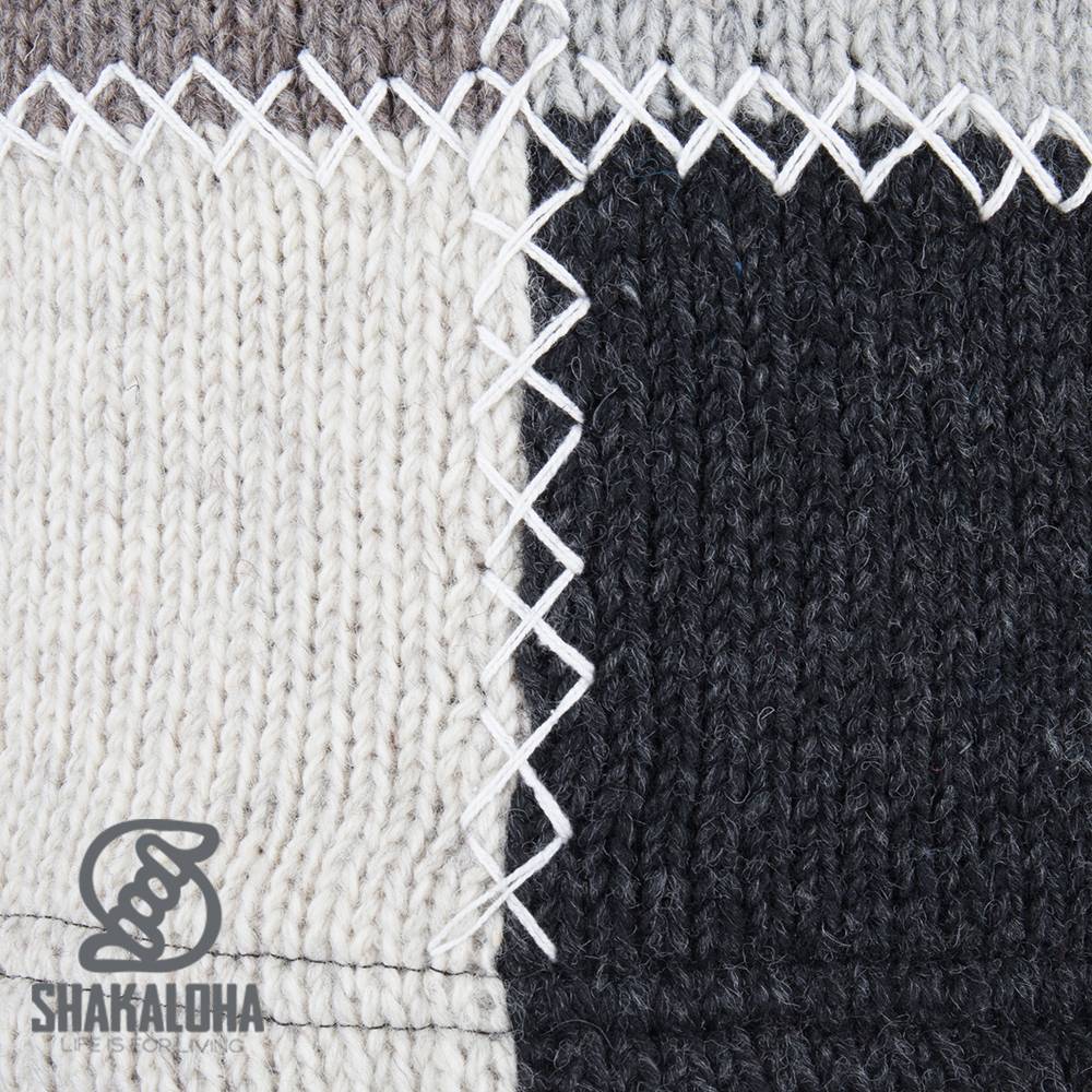 Caldo gilet da donna con motivo patchwork caratterizzato da pannelli di vari colori naturali, tra cui marrone chiaro, antracite e beige. Il gilet ha un cappuccio fisso ed è completamente foderato in pile, che copre il corpo, le maniche, il cappuccio e le tasche. Questo caldo gilet ha tasche laterali e una tasca interna chiudibile, e le cerniere sono realizzate da YKK, garantendo una qualità impeccabile. Questo gilet meravigliosamente caldo può essere indossato come giacca in inverno, ma è anche molto comodo nelle fresche giornate estive. Disponibile nelle taglie dalla S alla 3XL e in varie combinazioni di colori, è disponibile anche nella versione da uomo. I gilet Shakaloha sono realizzati in lana di pecora neozelandese al 100% e sono prodotti in Nepal nel rispetto sia degli animali che dei lavoratori. I gilet possono essere lavati con un po' di detersivo per lana, con un ciclo per lana a 30 gradi.