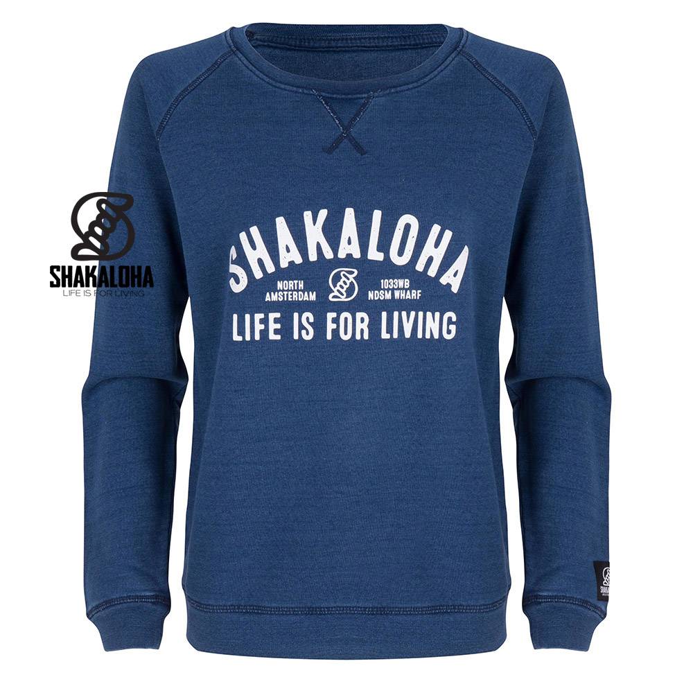 Maglione girocollo da donna blu - Cotone biologico con stampa Shakaloha