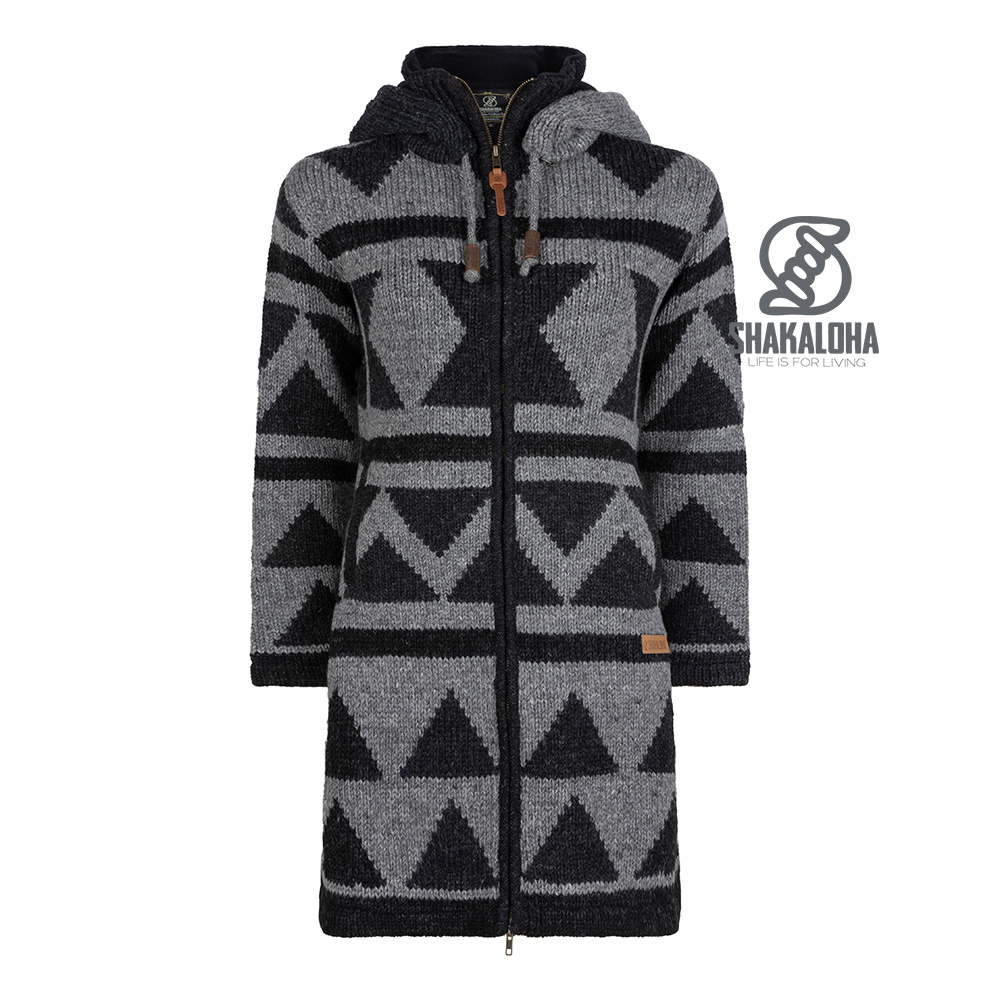 Cardigan in maglia di lana GrisAntra con cappuccio e cerniera da donna Pendle