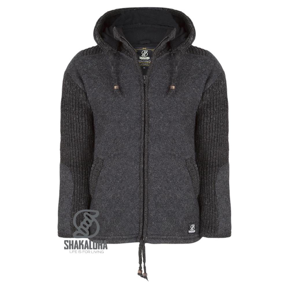 Gilet in lana lavorata a maglia Shakaloha Finn Antracite con fodera in pile e cappuccio staccabile - Uomo/Uniforme - Fatto a mano in Nepal con lana di pecora