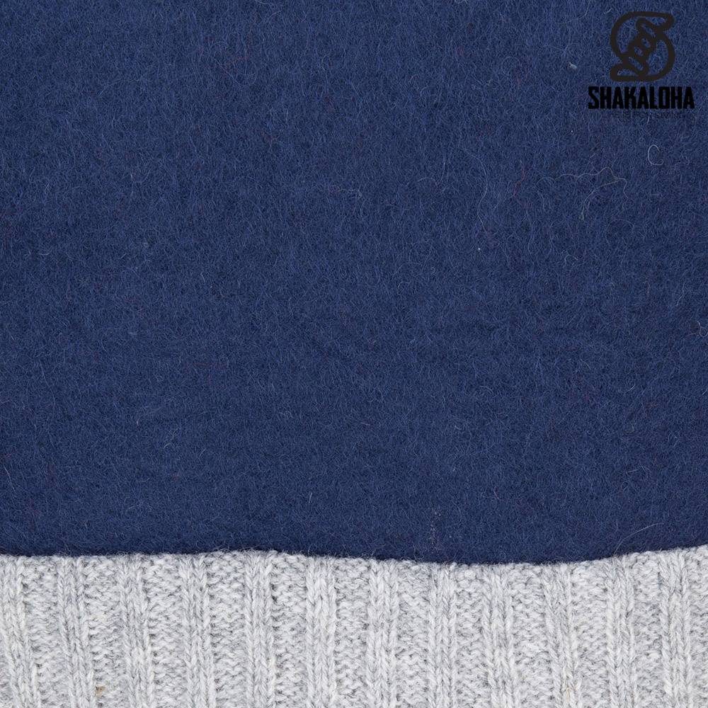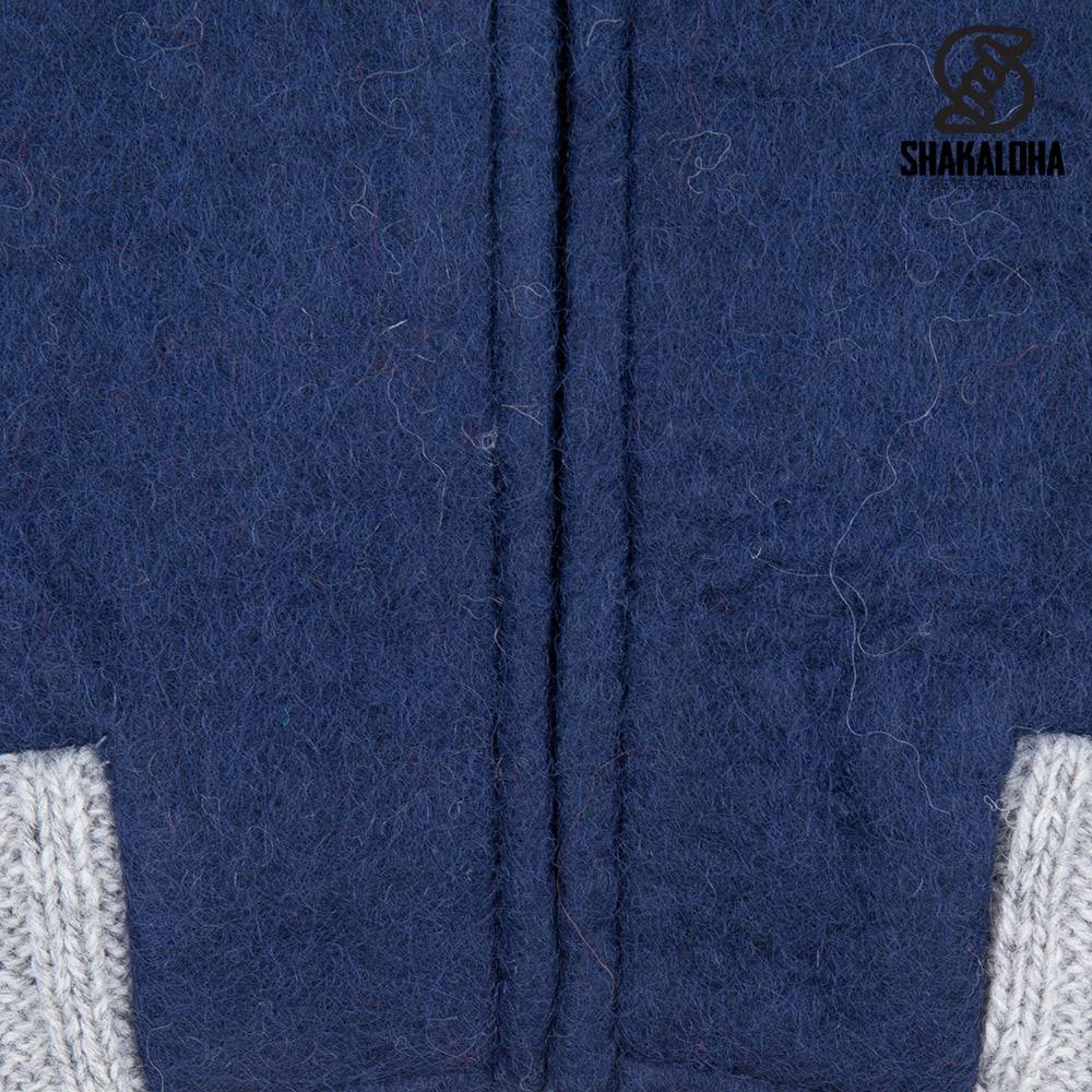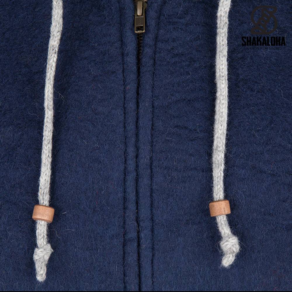 Beschrijving Shakaloha Gebreid Wollen Vest Baseball ZH Navy Blue Blauw met Katoenen Voering en Afneembare Capuchon - Man/Uni - Handgemaakt in Nepal van Schapenwol