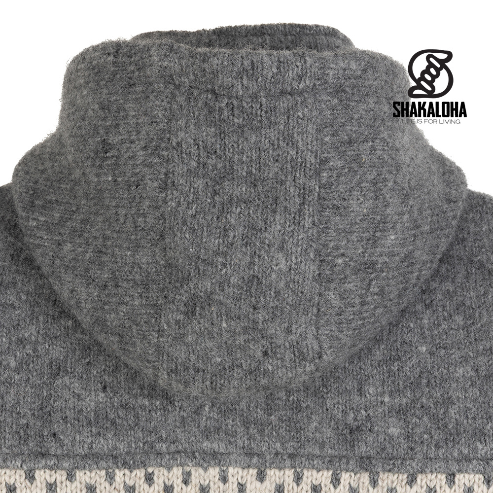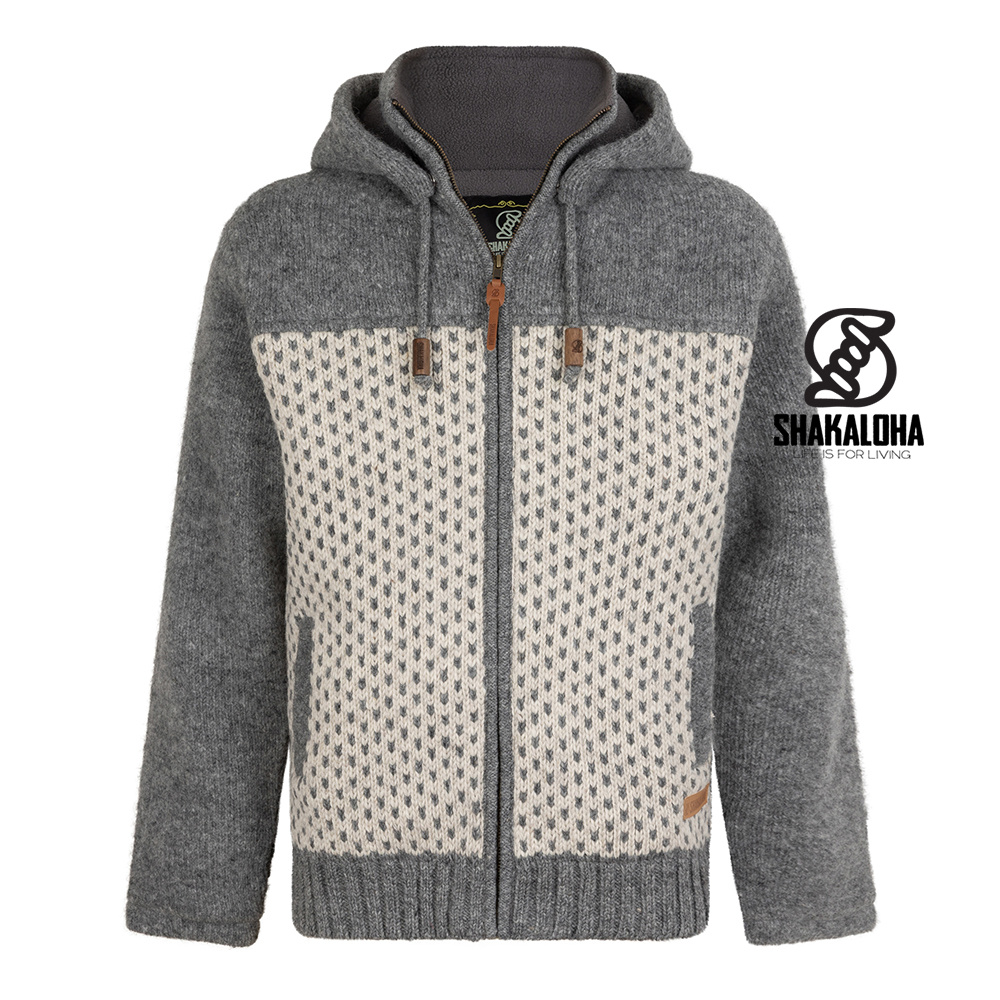 Beschrijving M Tundra Grijs/Beige – wollen herenvest met polyester fleece, YKK frontzip, afritsbare capuchon met anti-open knopje, kangoeroezak met fleecevoering + interne borstzak met rits, 2 wollen trekkoorden met houten ringen gegraveerd met Shakaloha‑logo, regular