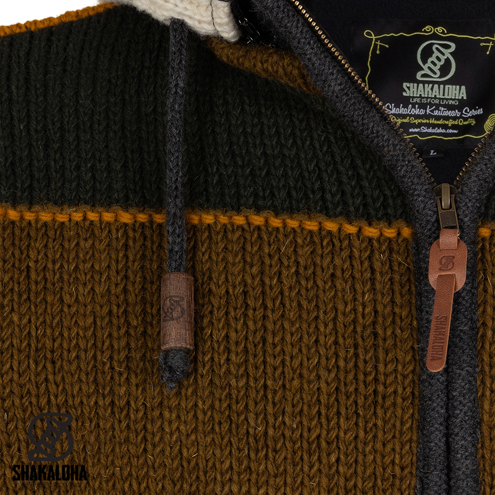 Shakaloha vest met brede gekleurde banen. Gebreid in Nepal met een grove steek. Het hele vest is gevoerd met mooi micro fleece, zo ook de kangeroo zak voor lekker warme handen.Afgewerkt met een sterke YKK kwaliteitsrits in de hoofdsluiting en een binnen zakje met rits. De capuchon is ook met fleece gevoerd en is afneembaar. Heerlijk jack voor alle jaargetijden! Made with love in Nepal.